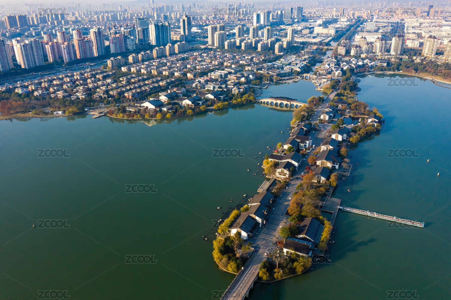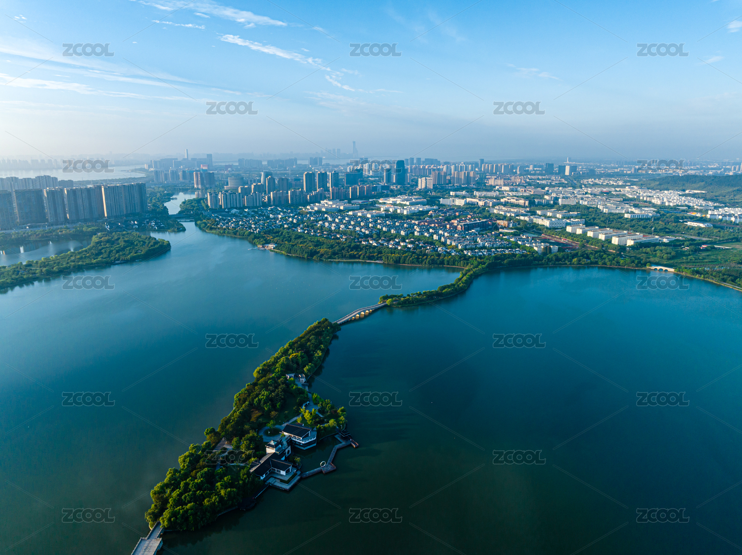 绍兴市柯桥区城市风光航拍,瓜渚湖湖滨公园