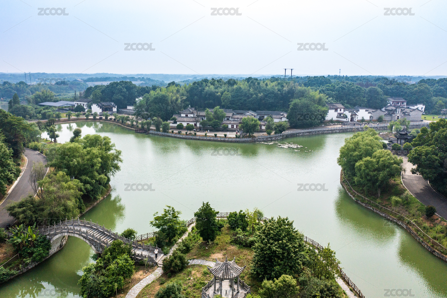航拍湖南岳阳湘阴县樟树港镇柳庄左宗棠故居