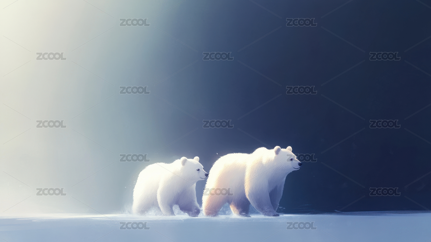 北极熊可爱唯美野生动物3D卡通插画壁纸
