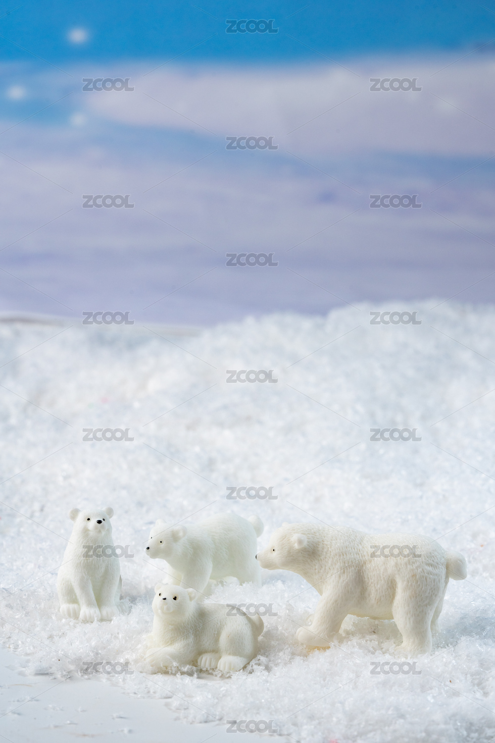北极熊一家在雪地里