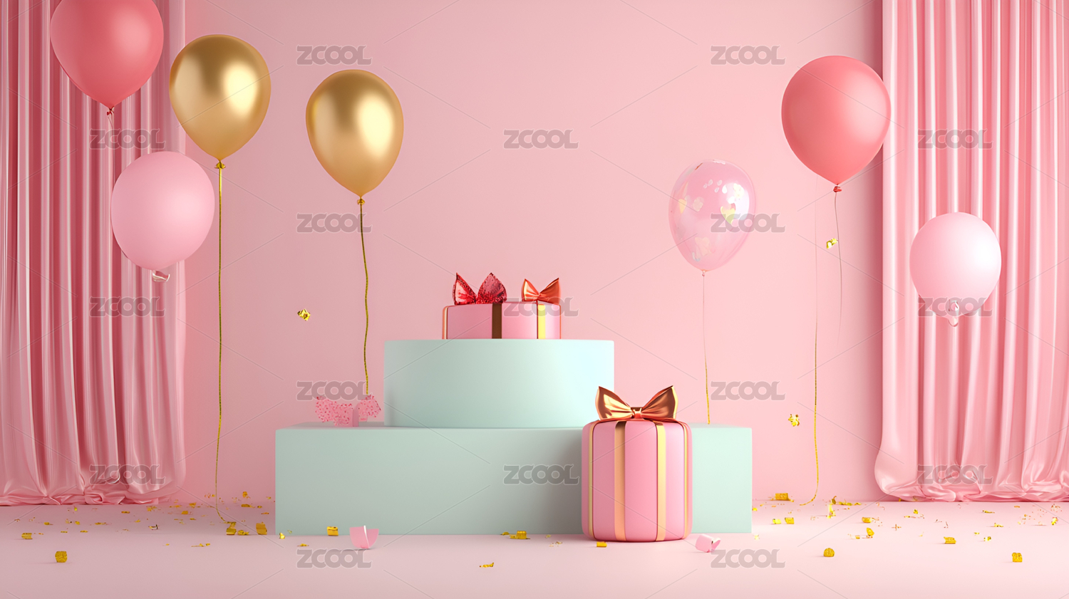 三维, 立体, 3D, 插图, 背景, 壁纸, 展台, 创意, 节日, 气球