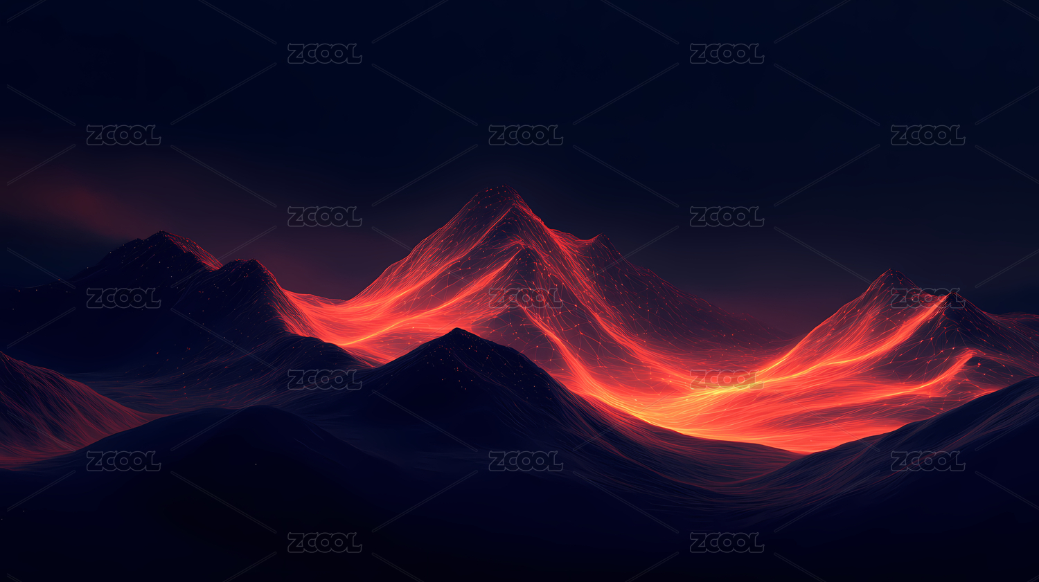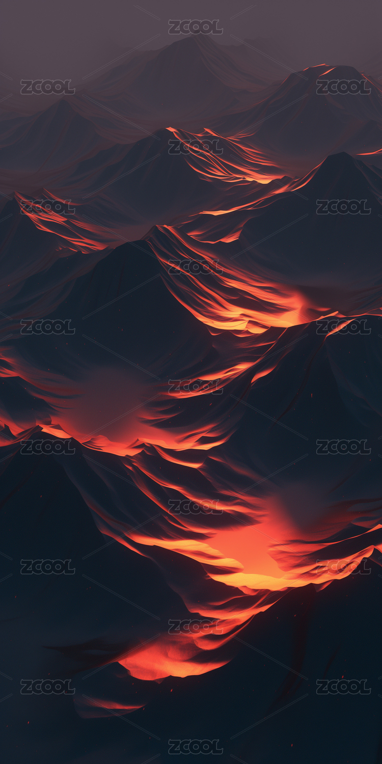 黑色悬崖山谷流淌火焰岩浆的立体模型沙盘画