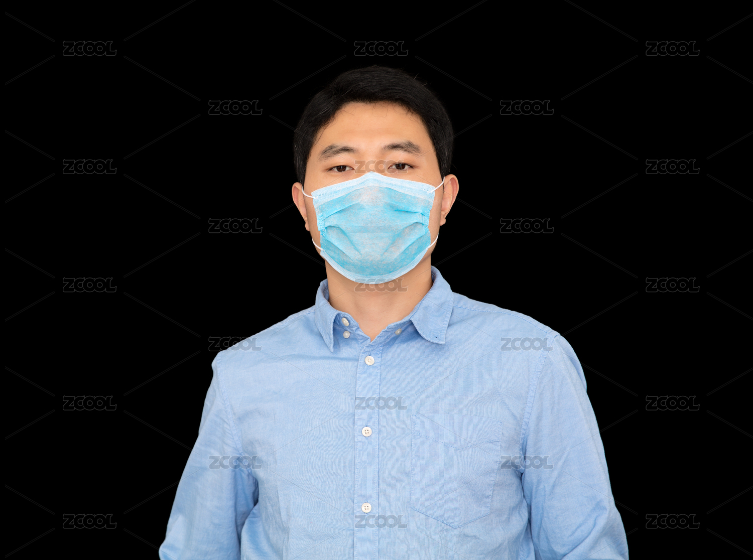 戴着口罩站在黑背景前的男士