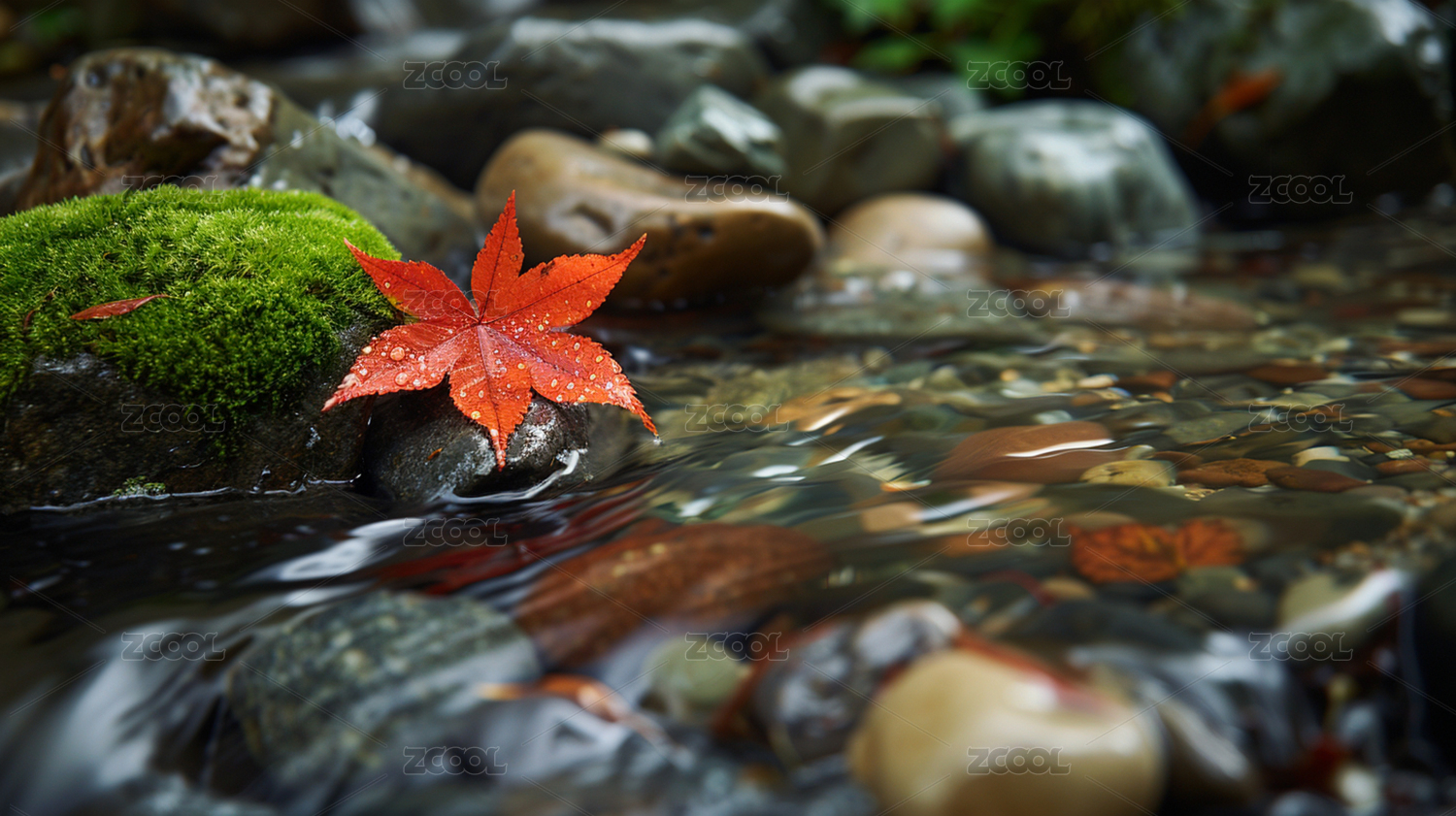 秋天,秋季,暖色调,色彩,季节,杭州,浙江,中国,流水,枫叶