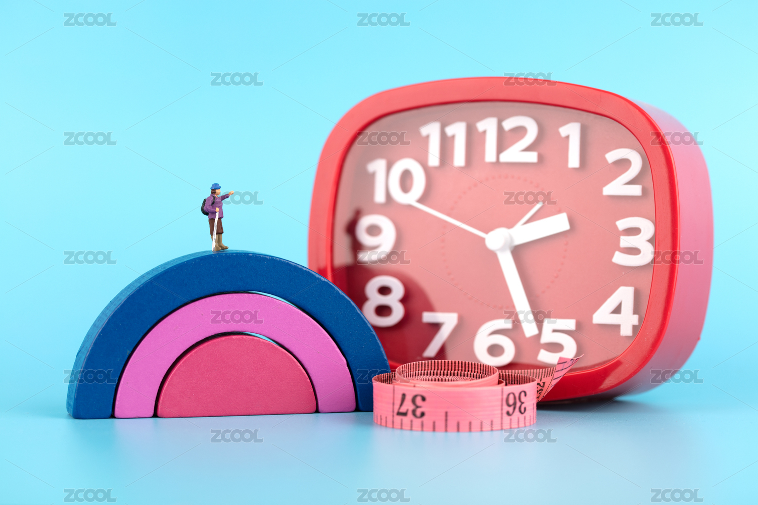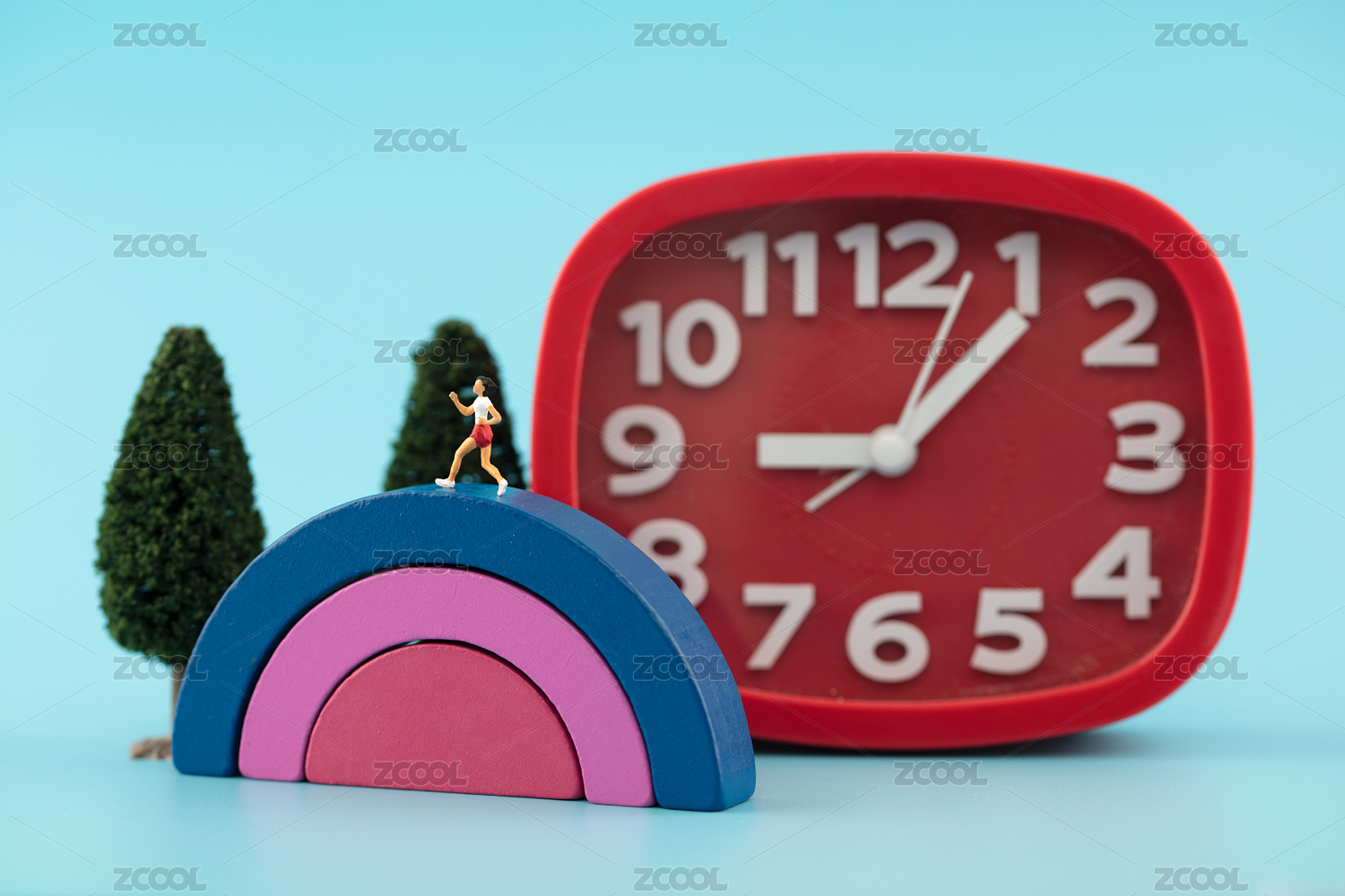 彩色积木彩虹桥早上闹钟晨练慢跑