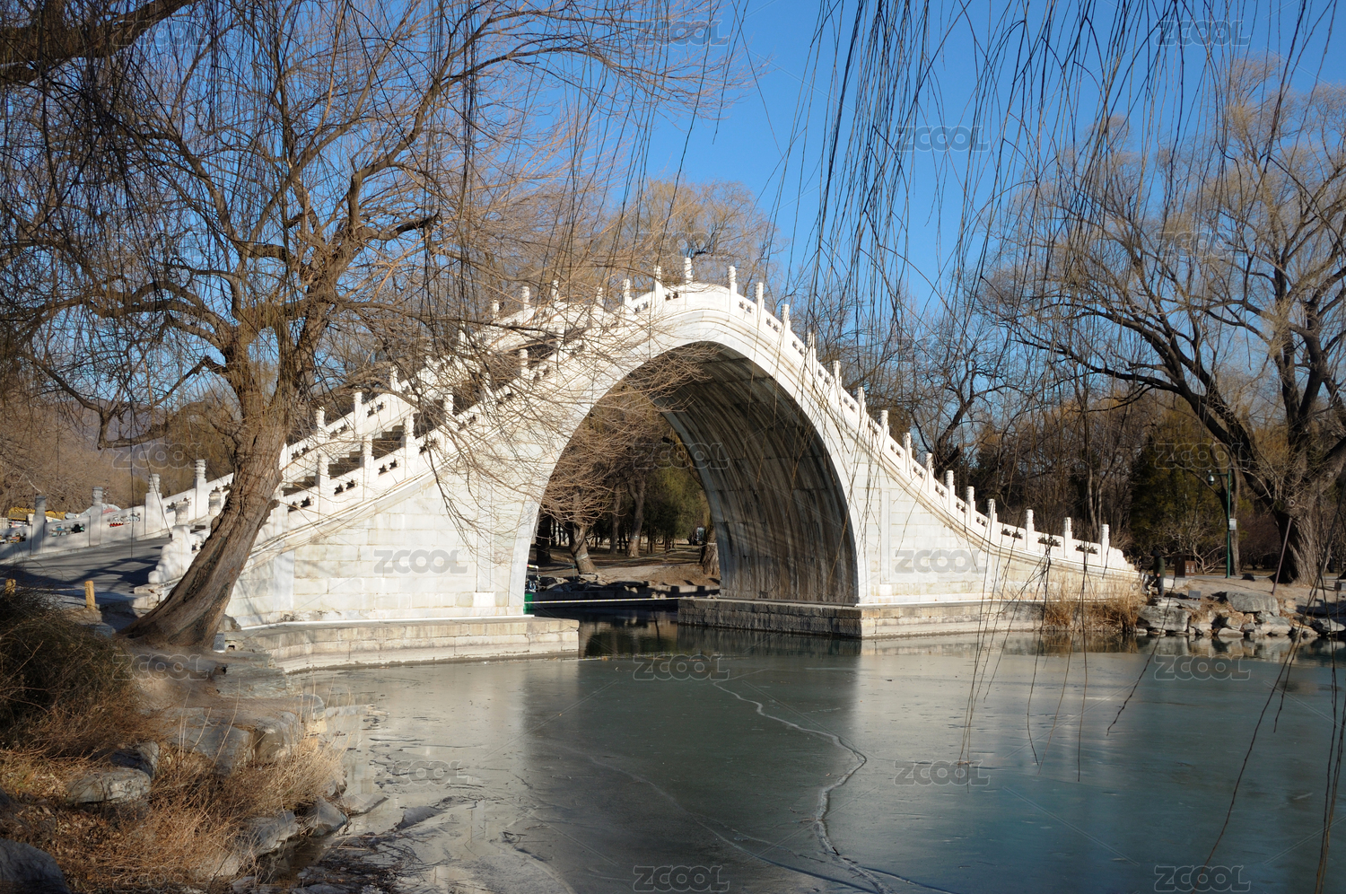 绣漪桥,罗锅桥,石桥,颐和园,北京,冬季,冬天,拱形,桥,天空