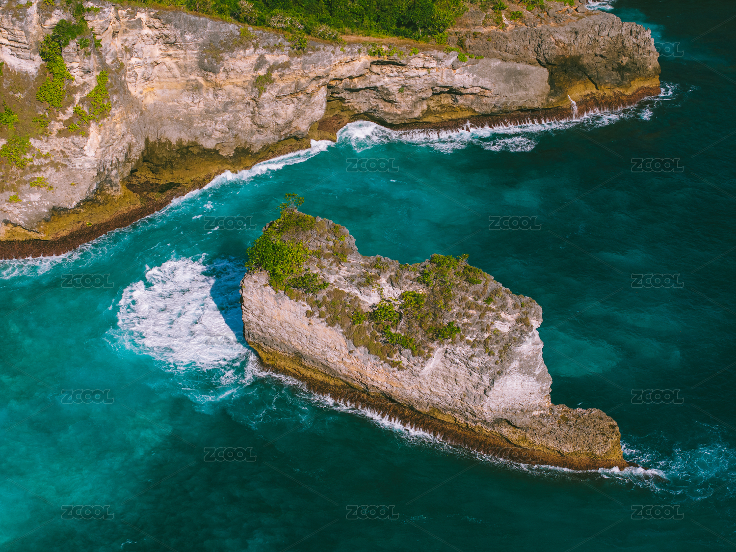印度尼西亚巴厘岛悬崖海岸线和绿松石海洋