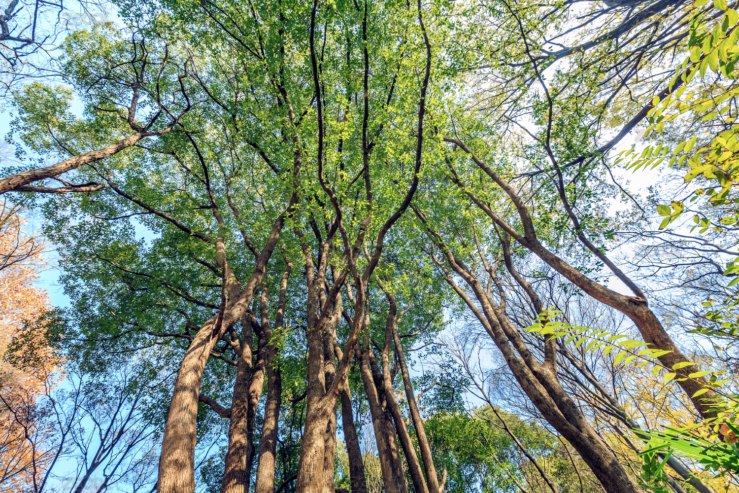 中国河南郑州黄河迎宾馆水杉林正下方视角