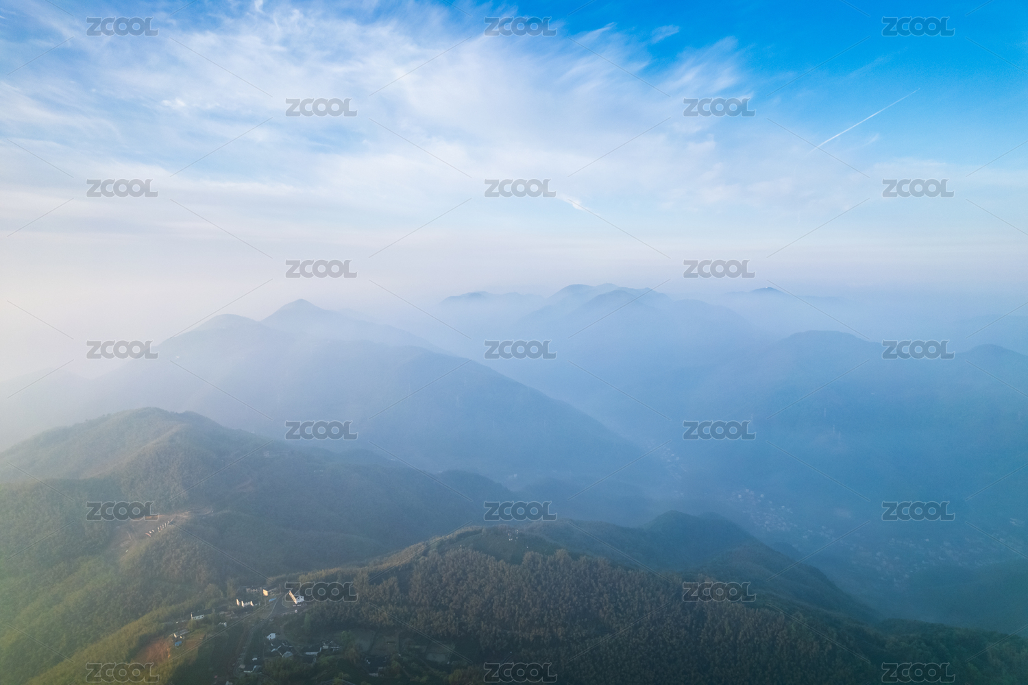 杭州萧山寺坞岭望江阁群山清晨山雾自然风光