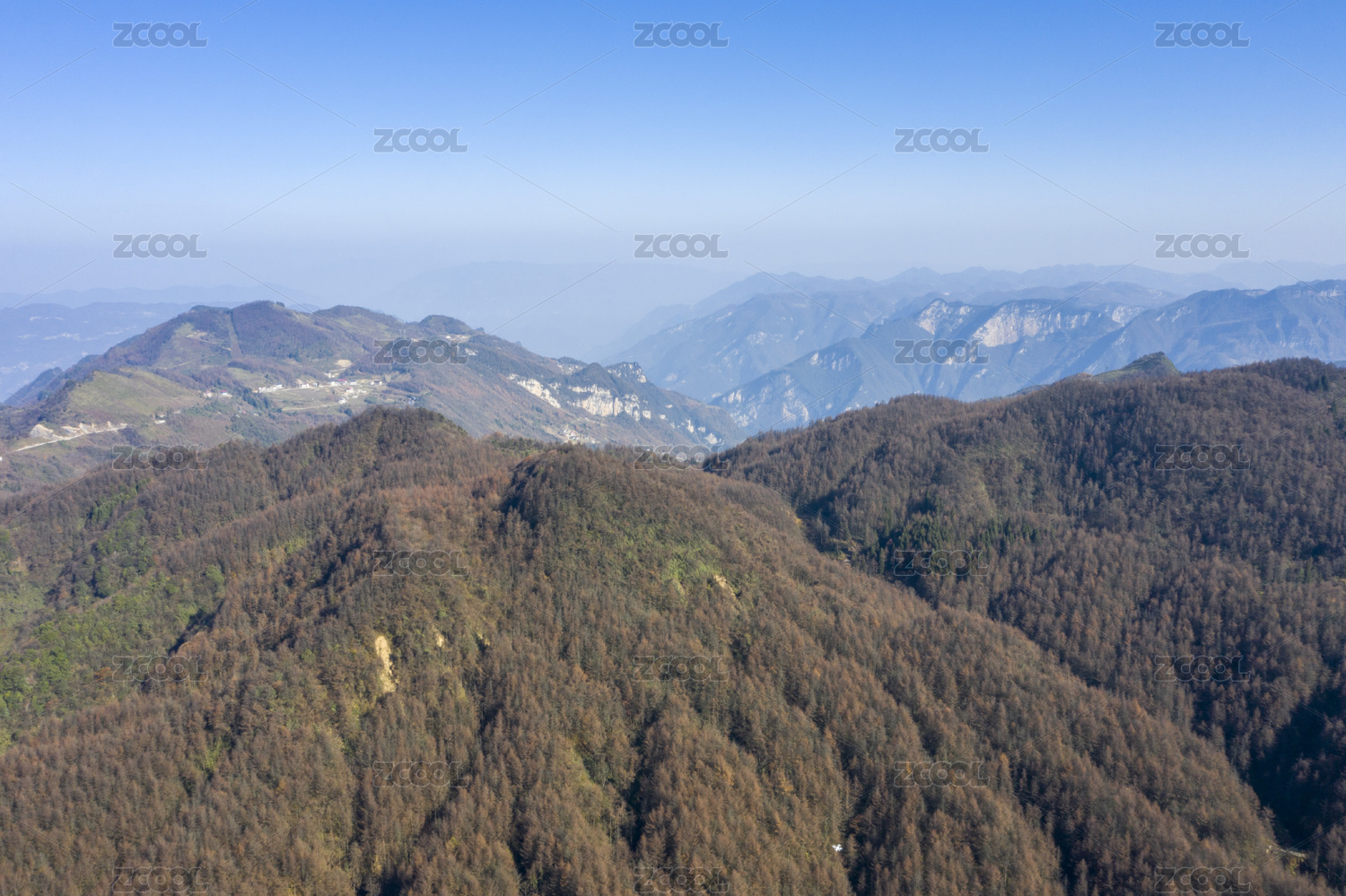重庆云龟山山间晨雾下的青山连绵与村庄、道