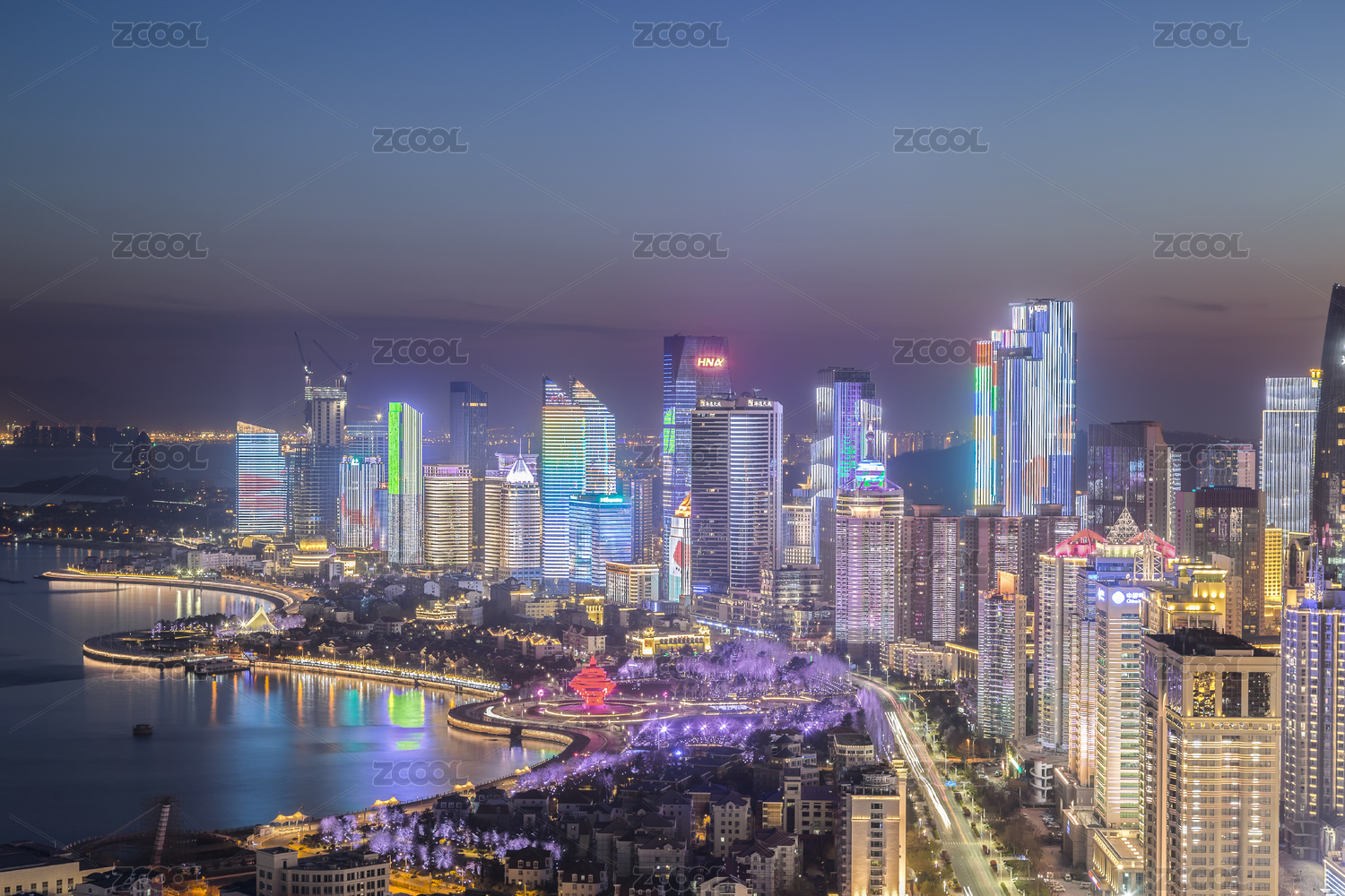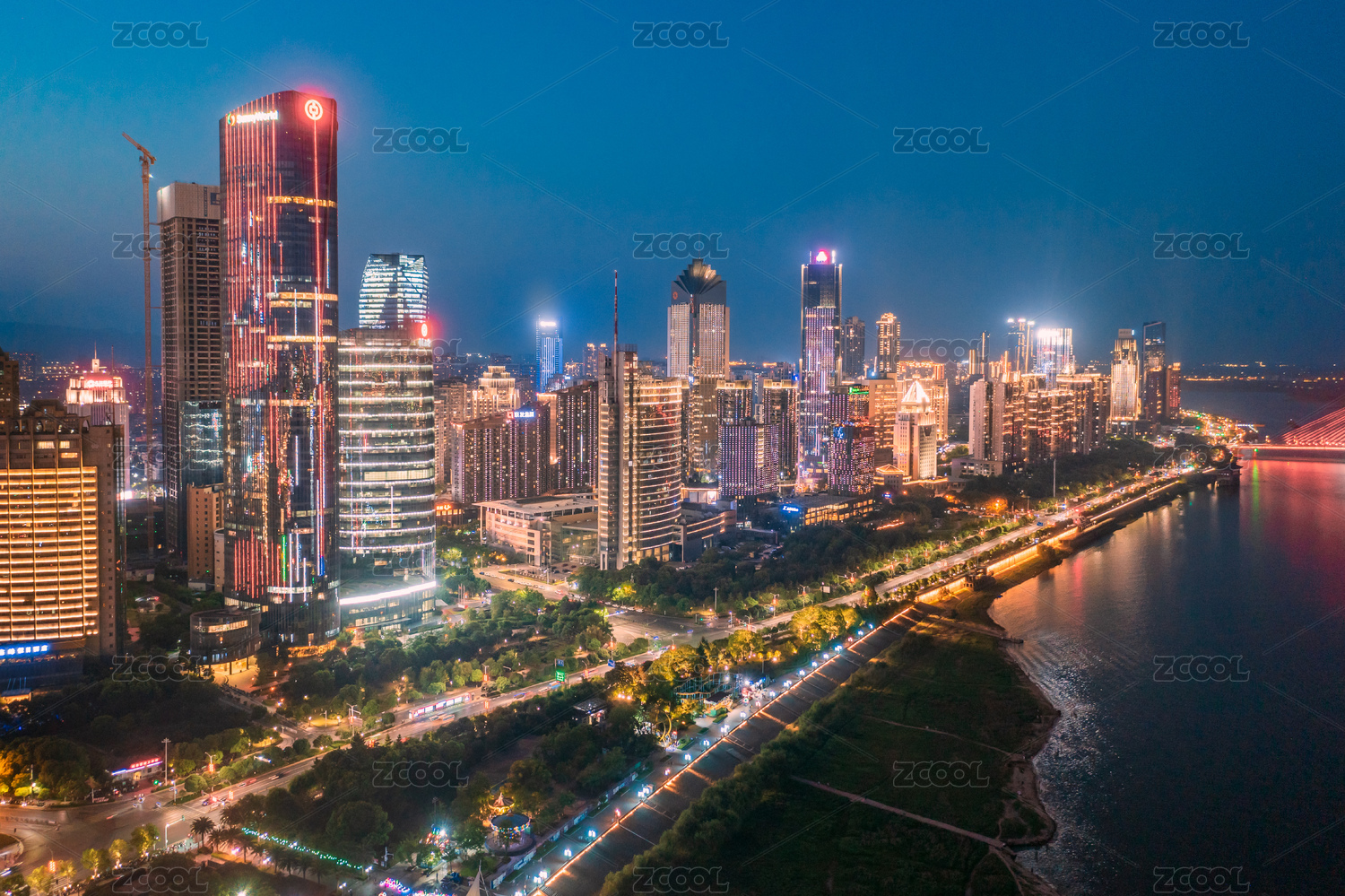 中国江西南昌江滨红谷滩城市天际线夜景风光