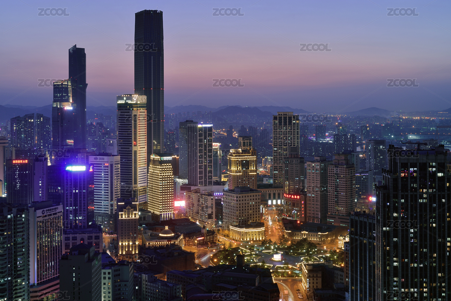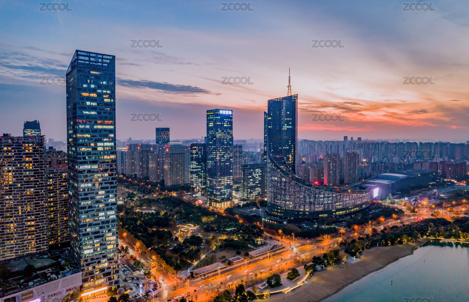 商务区,天际线,城市,摩天大楼,晚上,市中心,城市景观,建设,塔,高