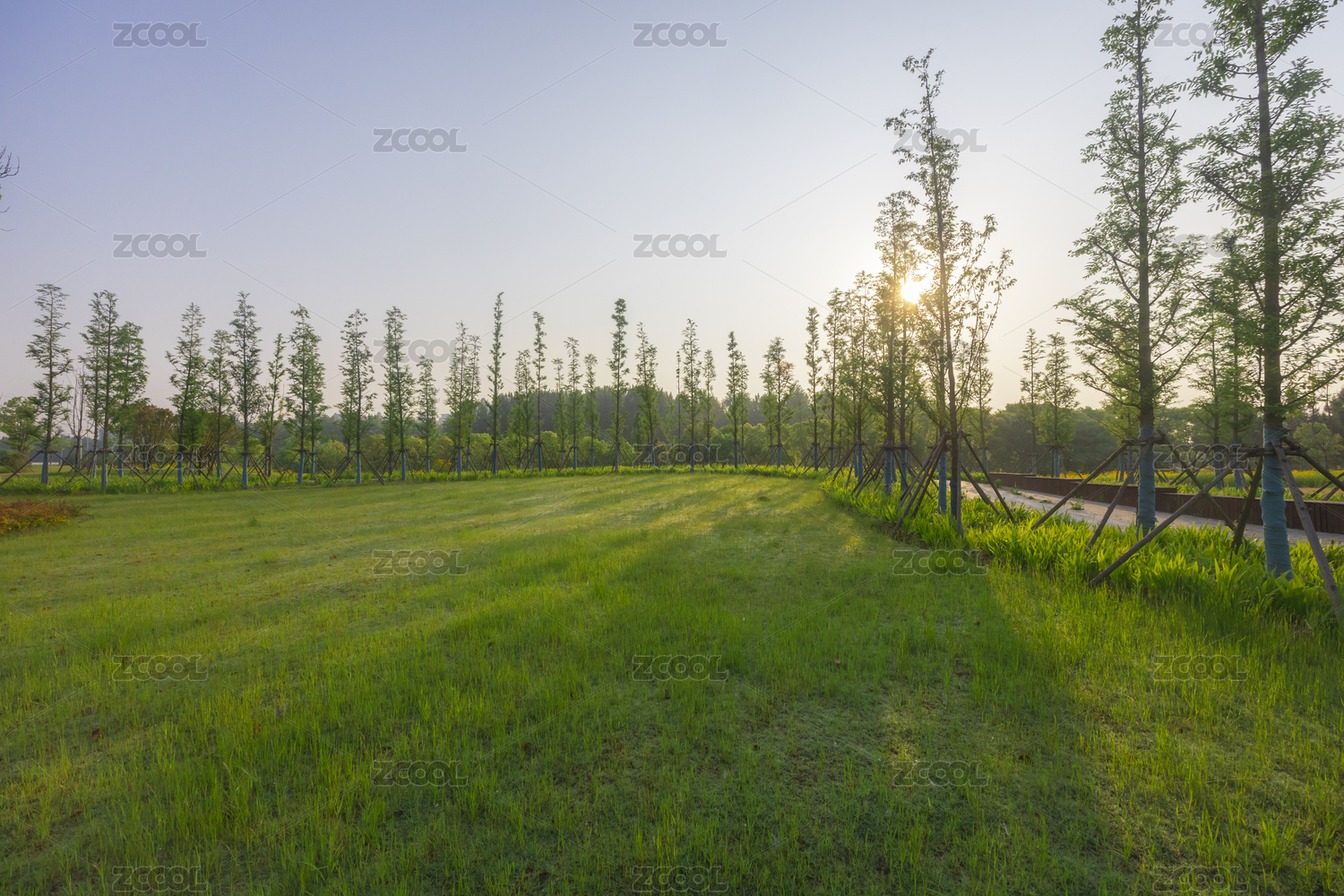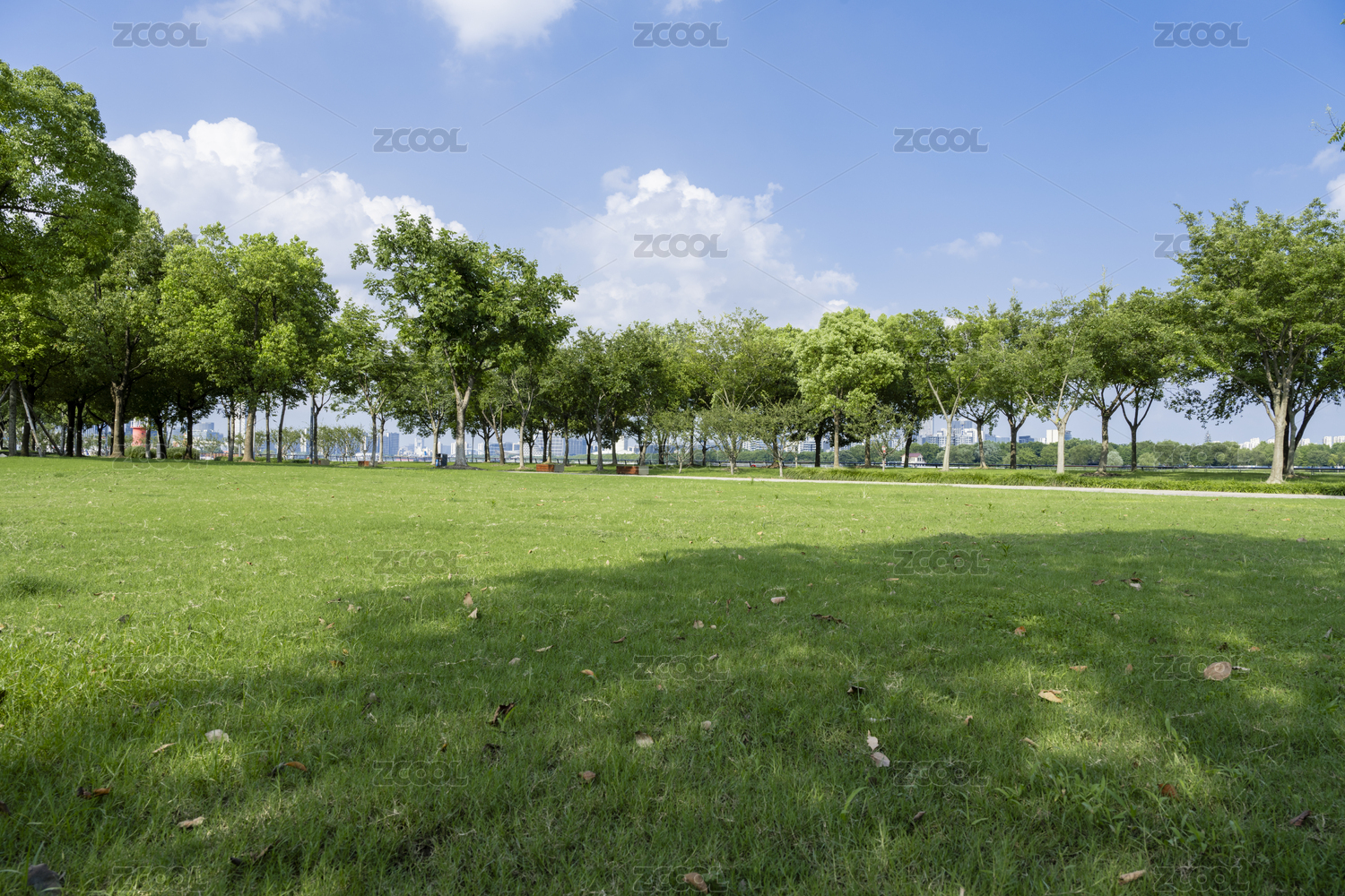 公园草地与小树林美景