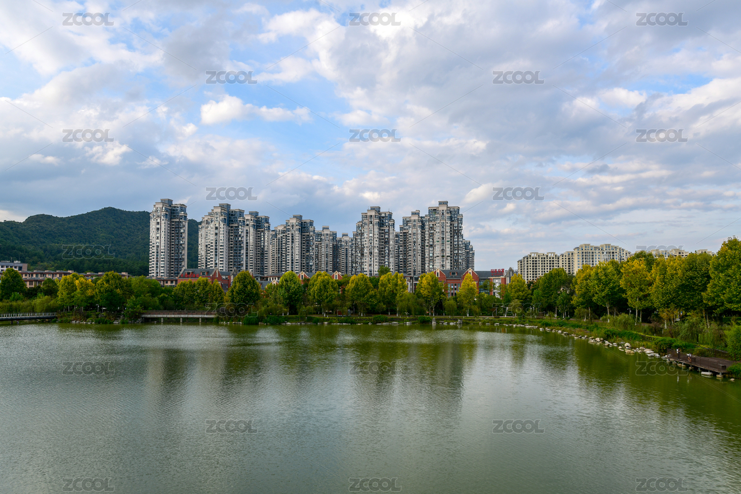 中国湖南省郴州市爱莲湖公园周边的高层住宅建筑