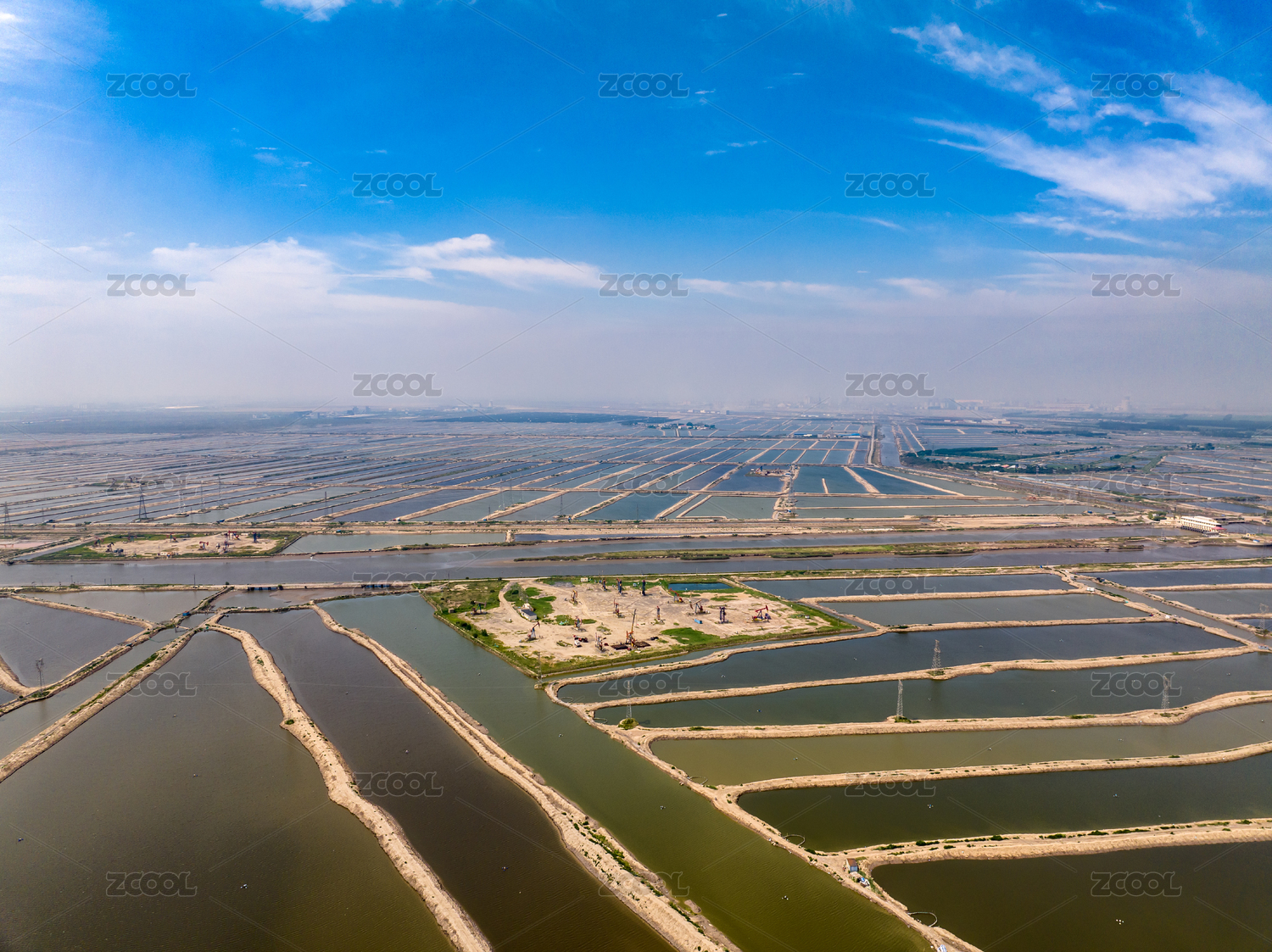 河北唐山曹妃甸大型水域区域及周边的航拍