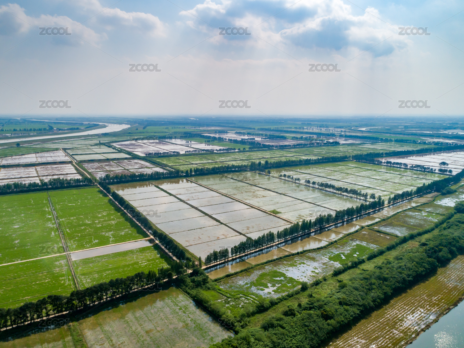 航拍秋天的中国江苏省盐城大丰万亩良田