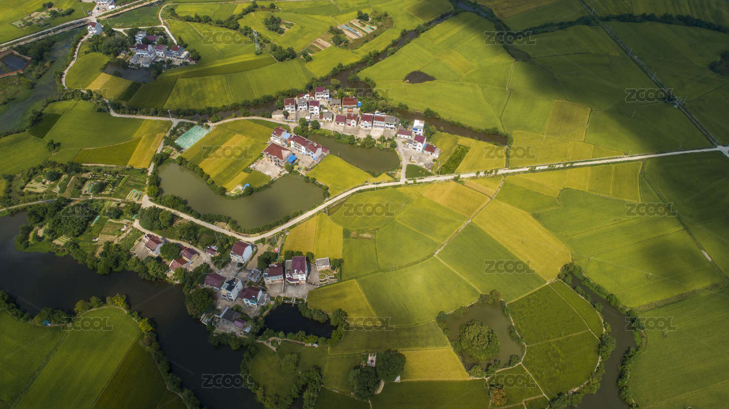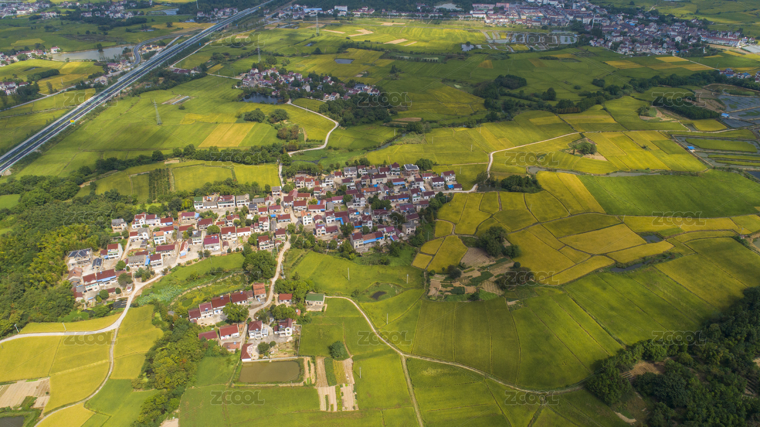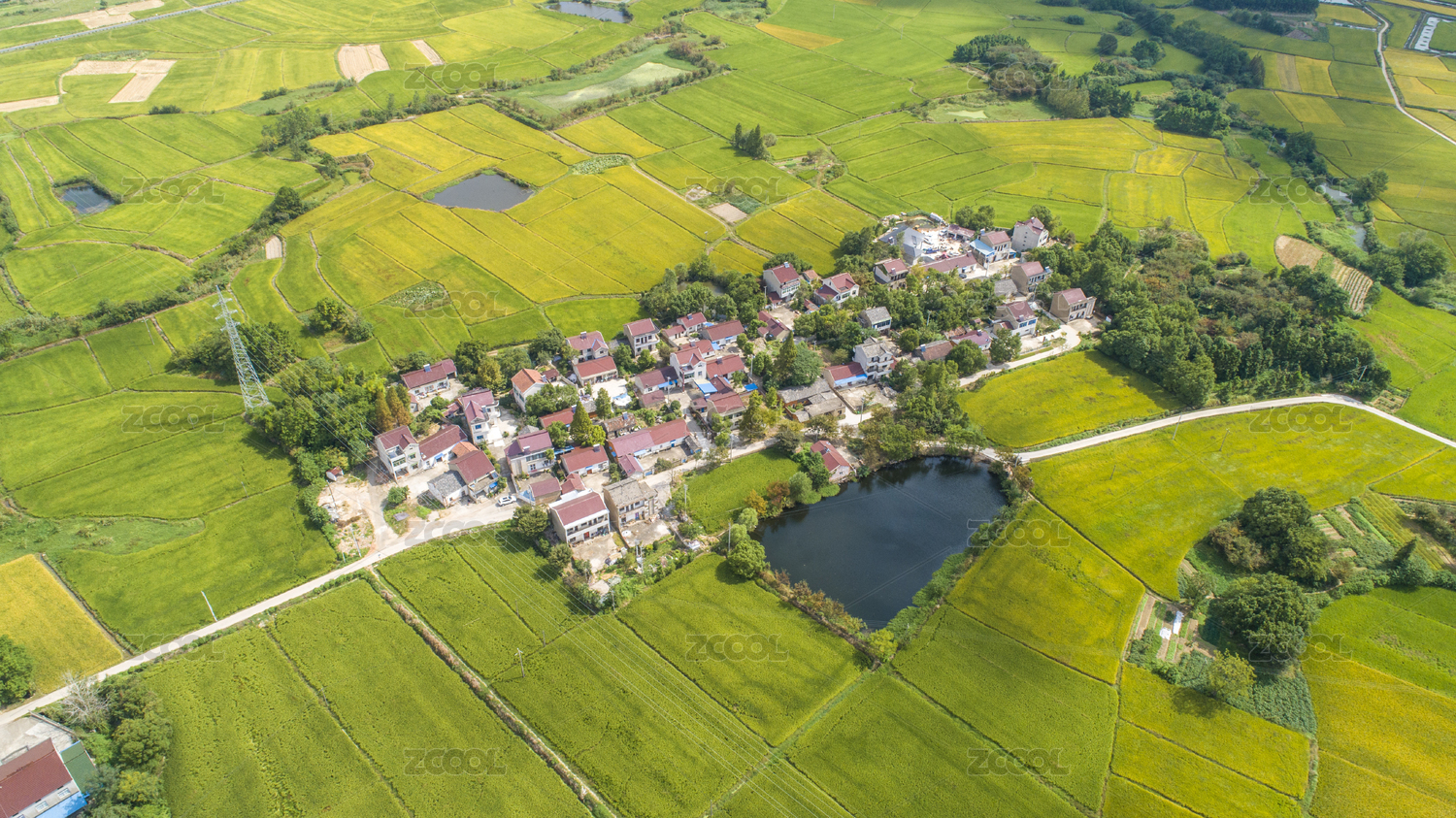 航拍中国安徽省宣城市乡村稻田和美丽田园风光