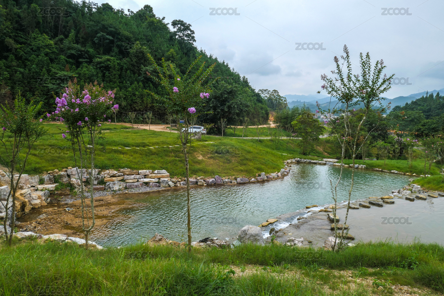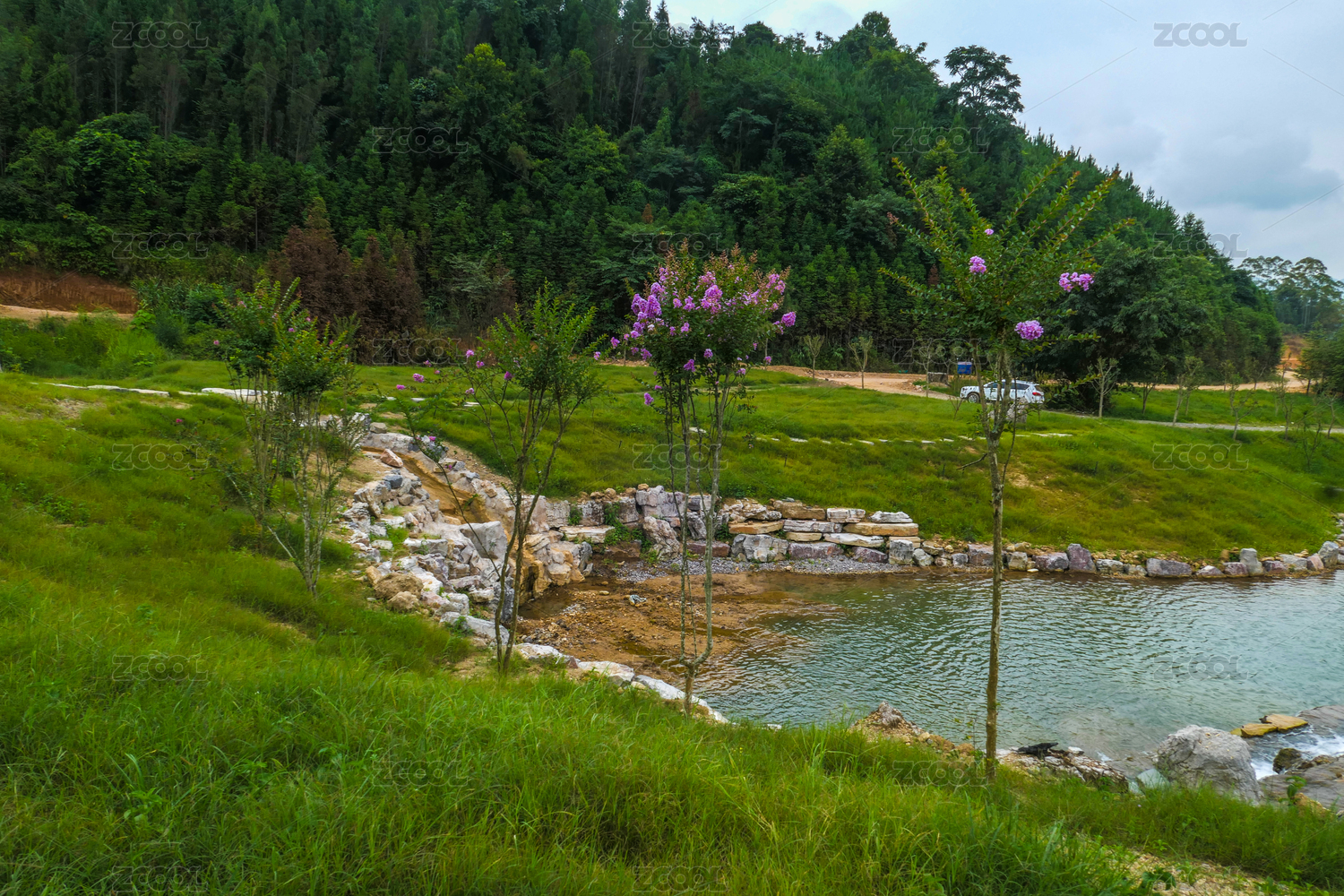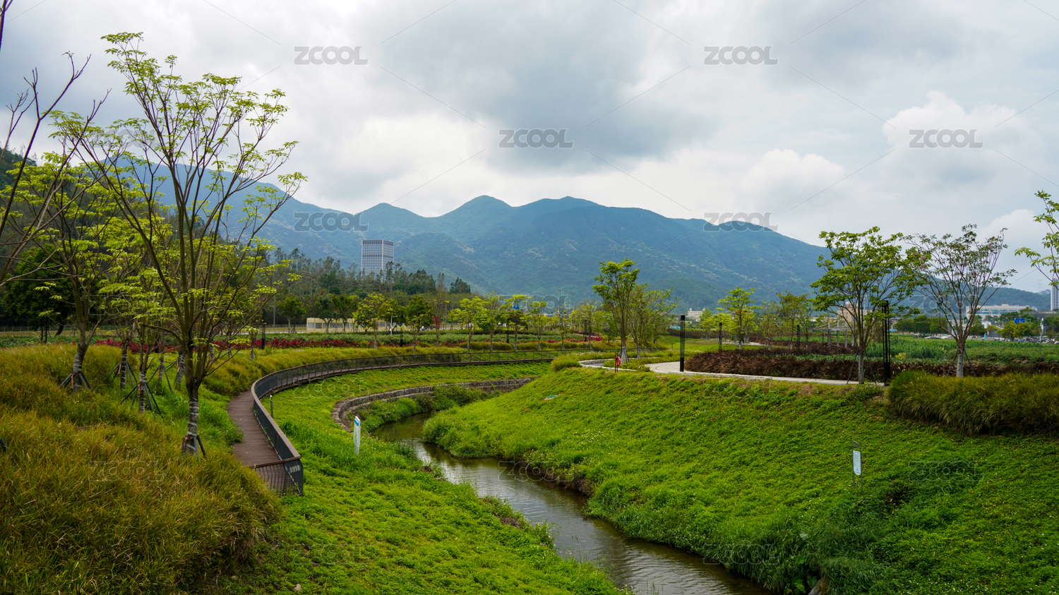 郊外的湿地公园和树