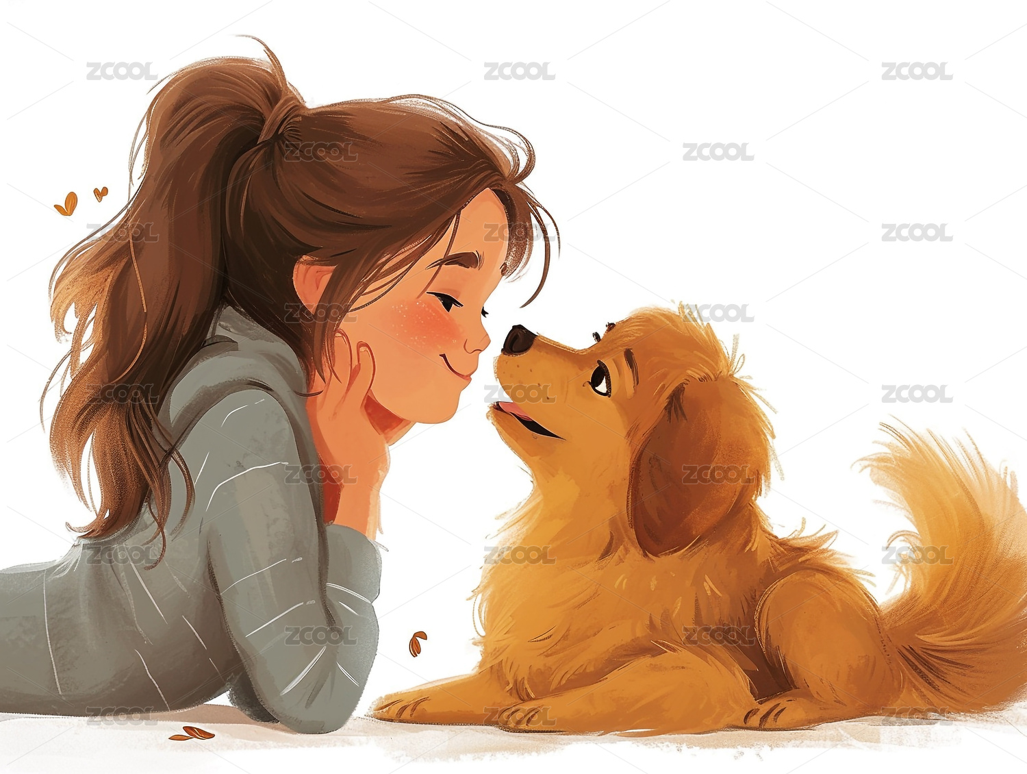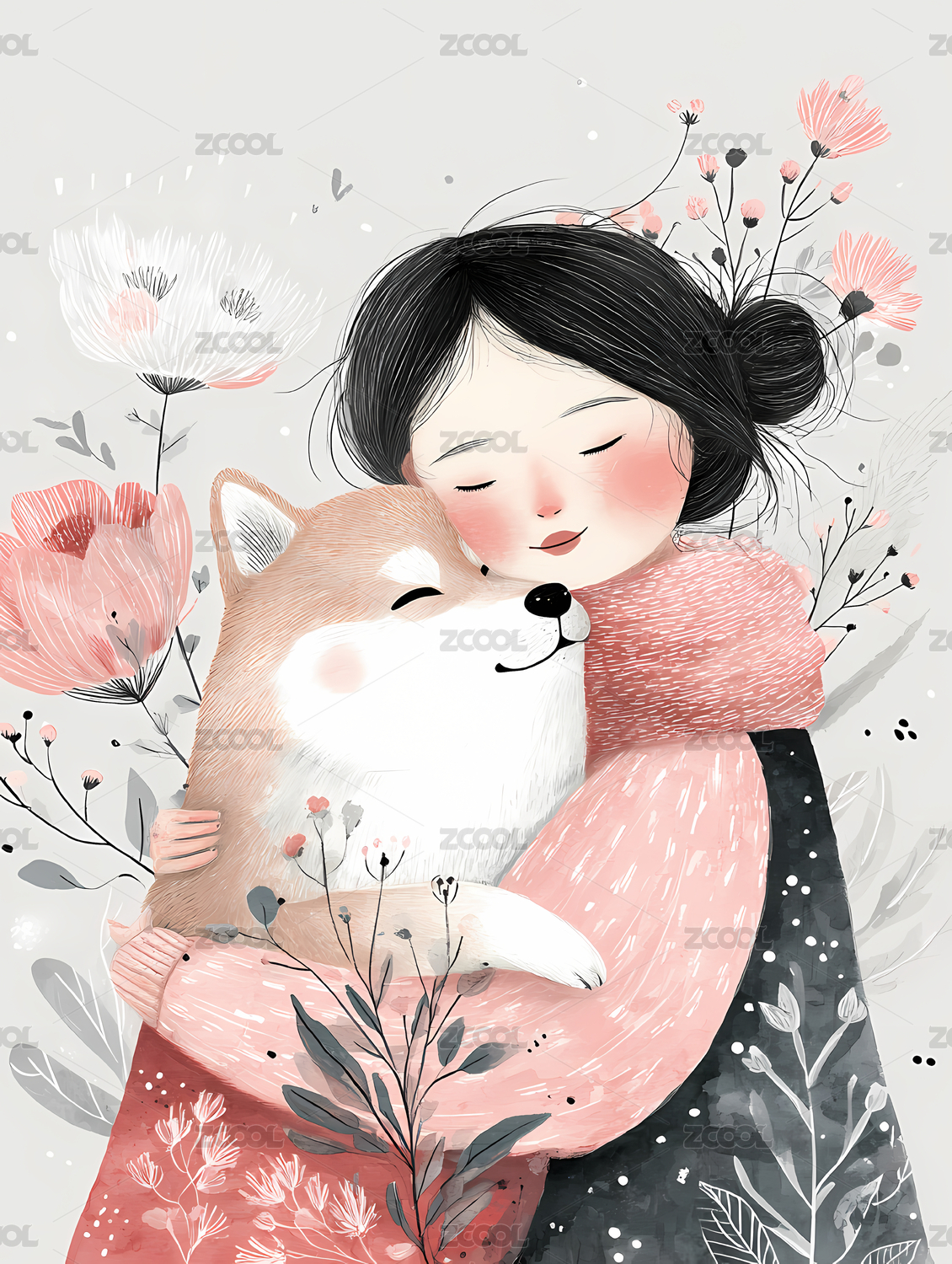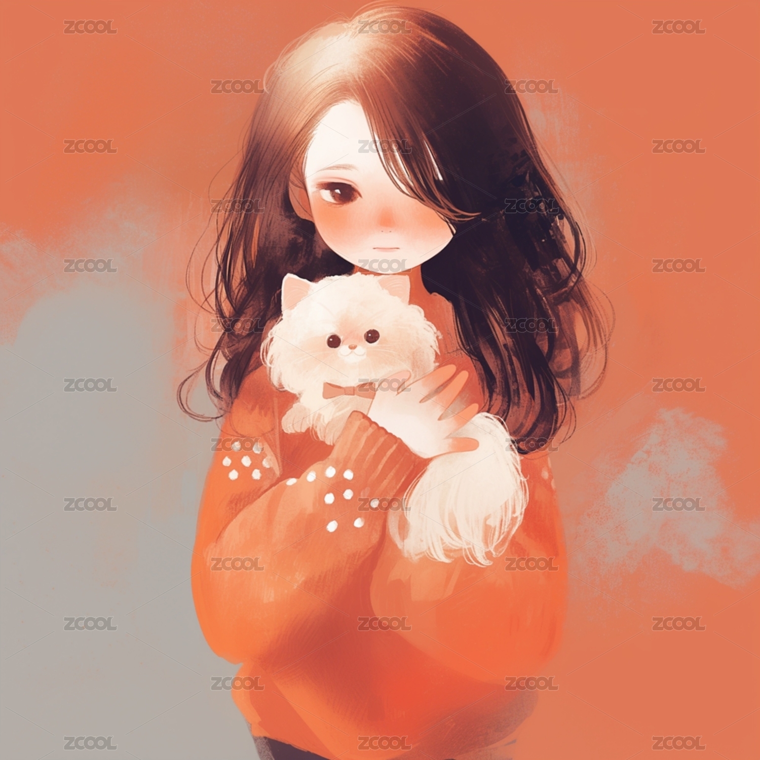 活泼可爱2d女孩猫咪平面插画唯美温柔