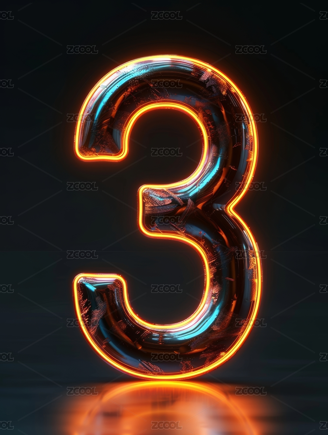 3D炫彩色透明发光数字3