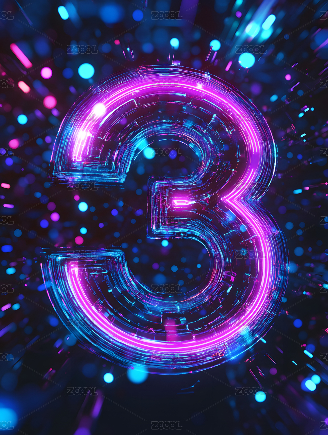 霓虹数字3发光艺术效果