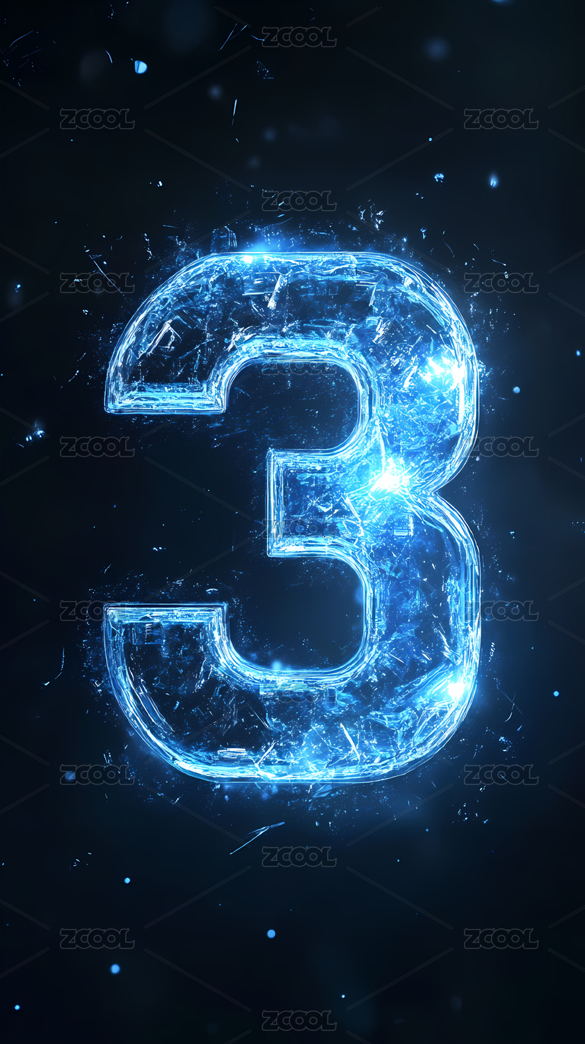 蓝色科技感透明玻璃数字3