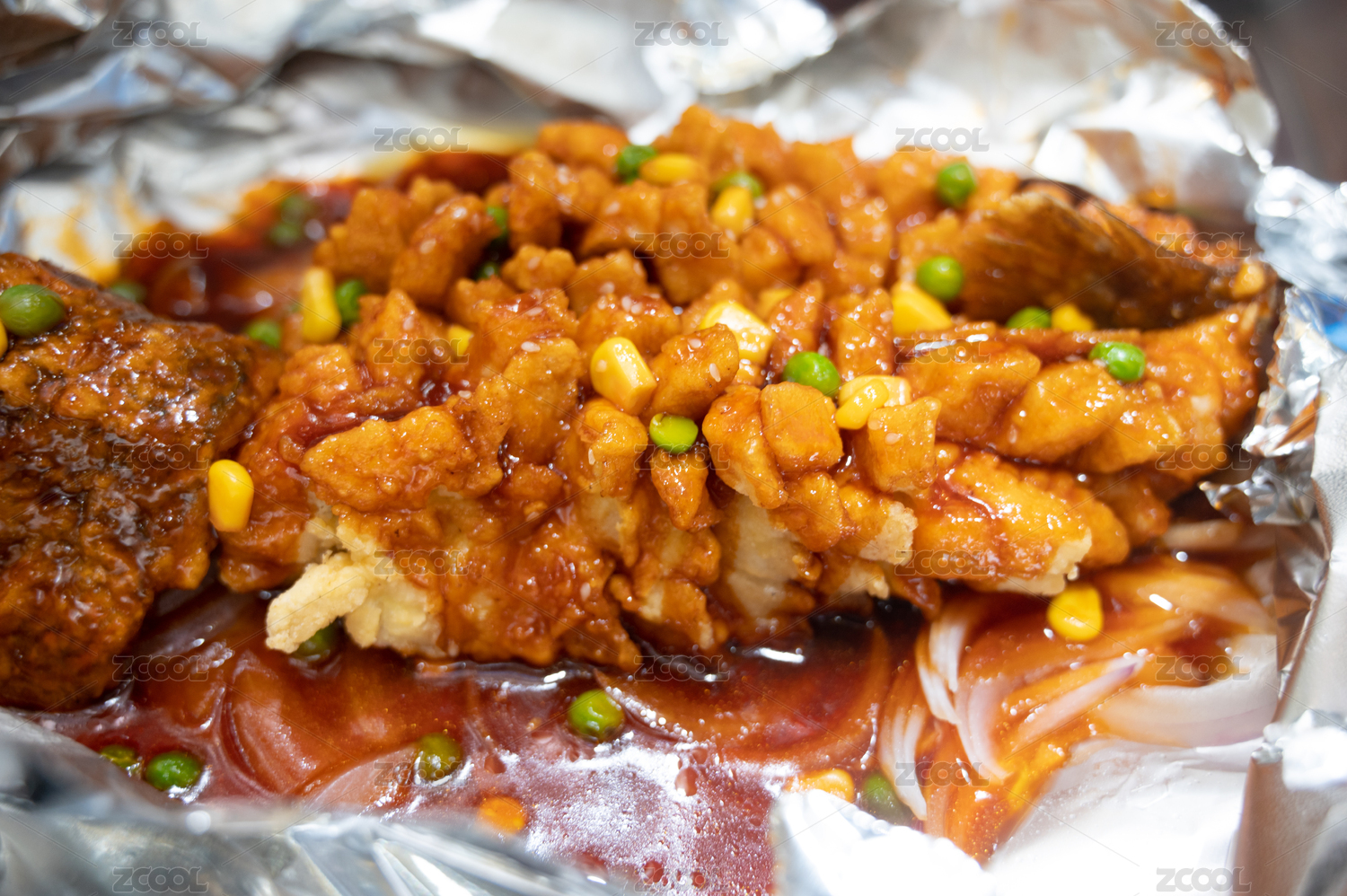 锡纸包裹的中国菜静物美食松鼠鳜鱼
