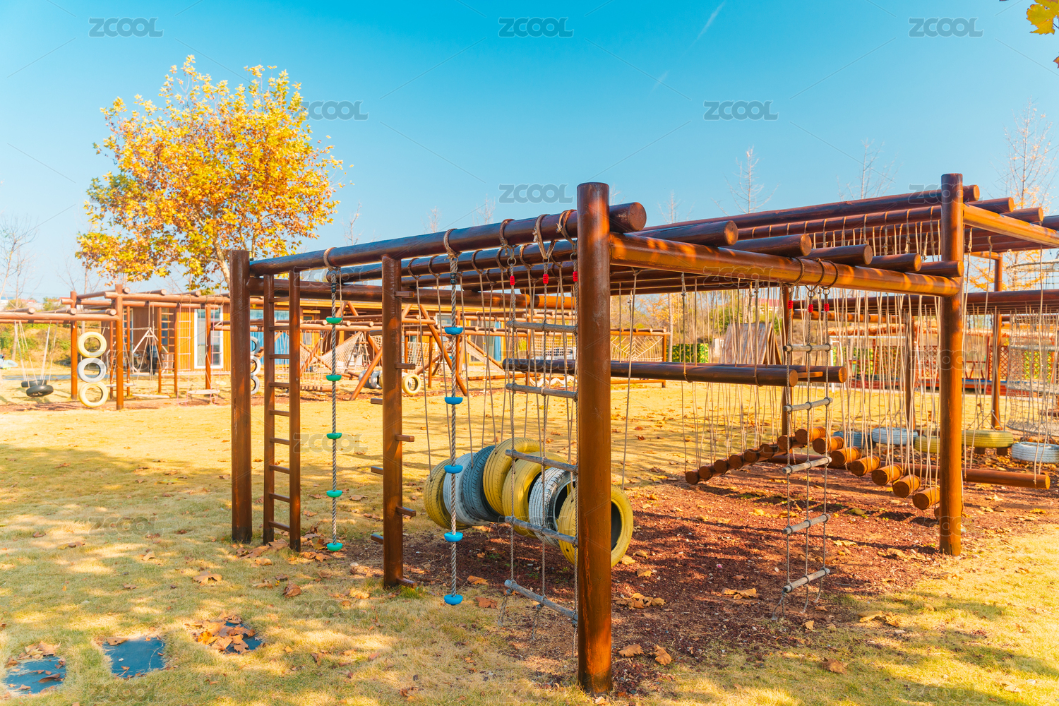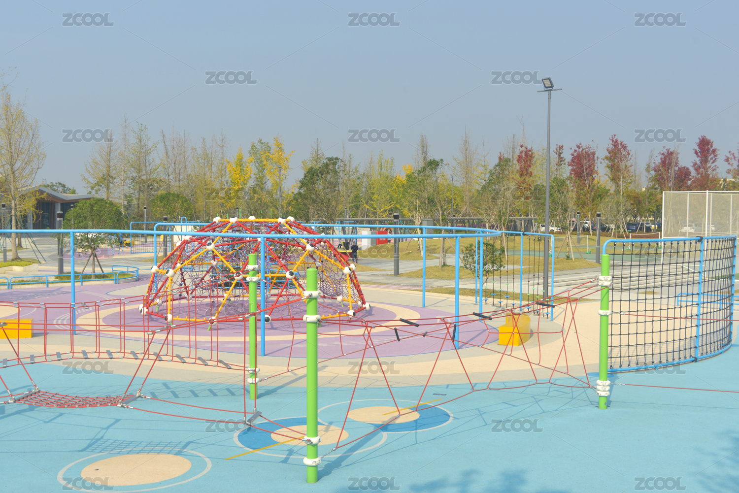 中国四川成都东风渠绿道汽车公园儿童游乐攀爬杆