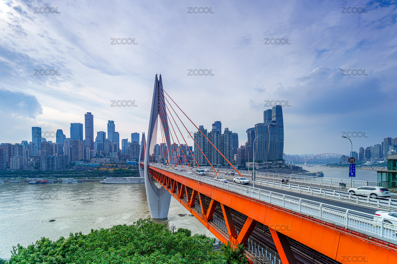 中国,重庆,重庆市,千厮门大桥,红色,桥梁,钢结构,斜拉桥,城市,风光