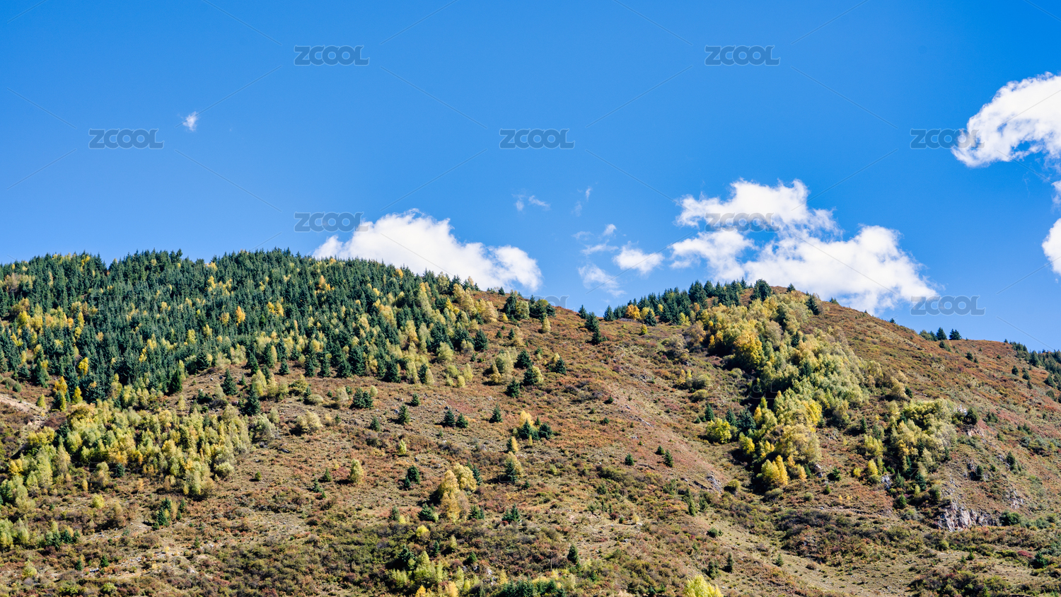 中国四川康定新都桥蓝天白云彩林秋色高原风光