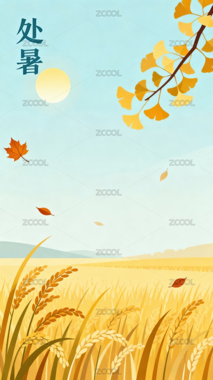 处暑,柿子,看书,芦苇,插画,手绘,夏日,夏天,炎热,节气