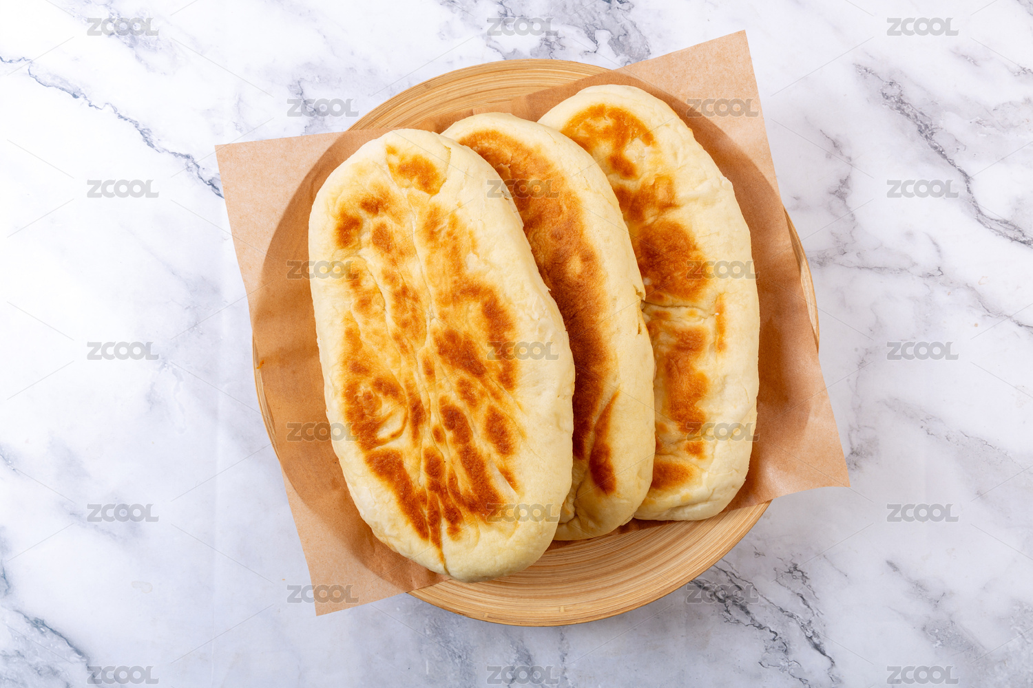 桌面上的盘子里的美味可口的锅盔