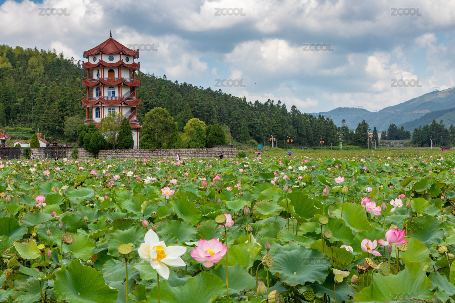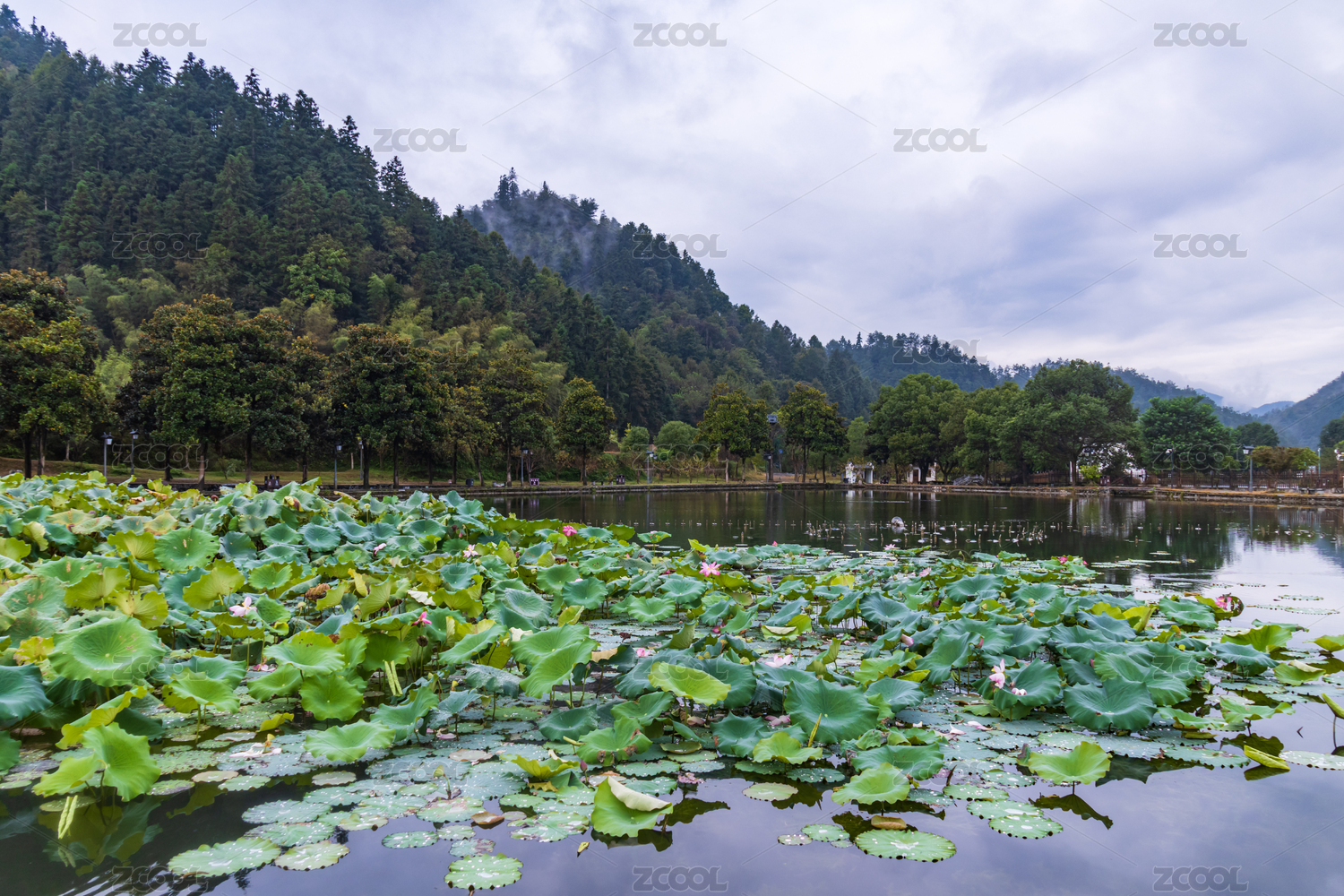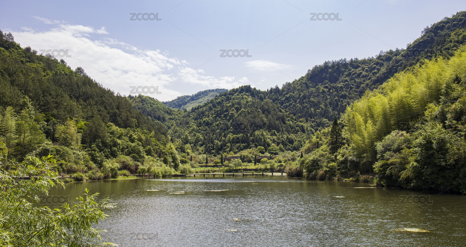 古田山庄五龙湖周边景色及湖面倒影,中国福建上杭
