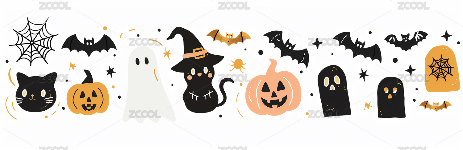 可爱万圣节幽灵南瓜蝙蝠糖果墓地蜡烛黑猫