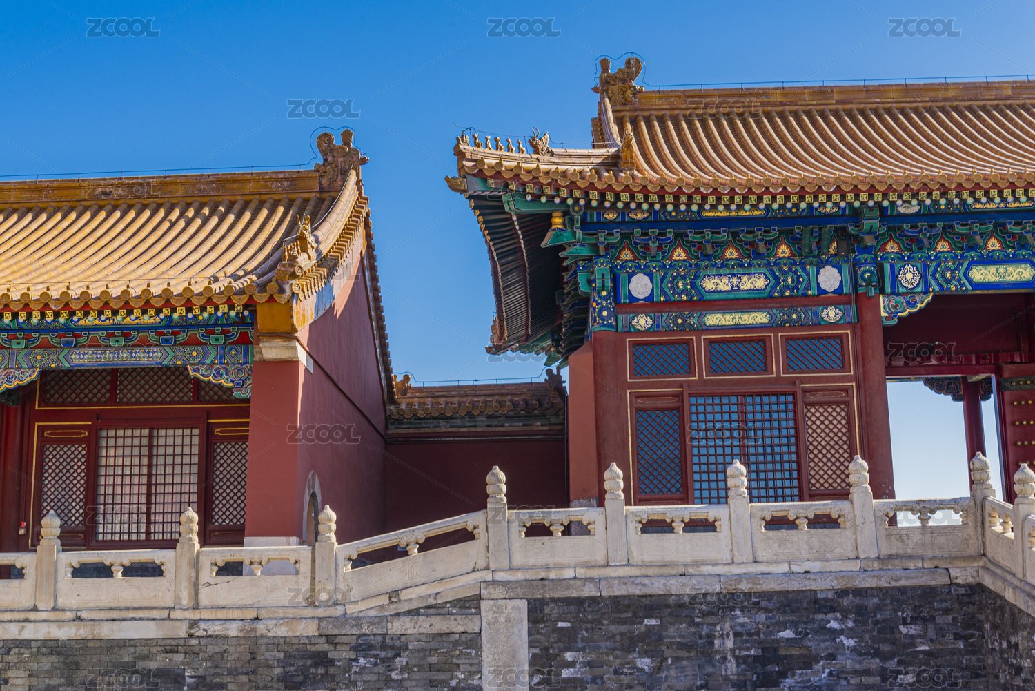 蓝天下的中国北京故宫博物馆的古宫殿建筑