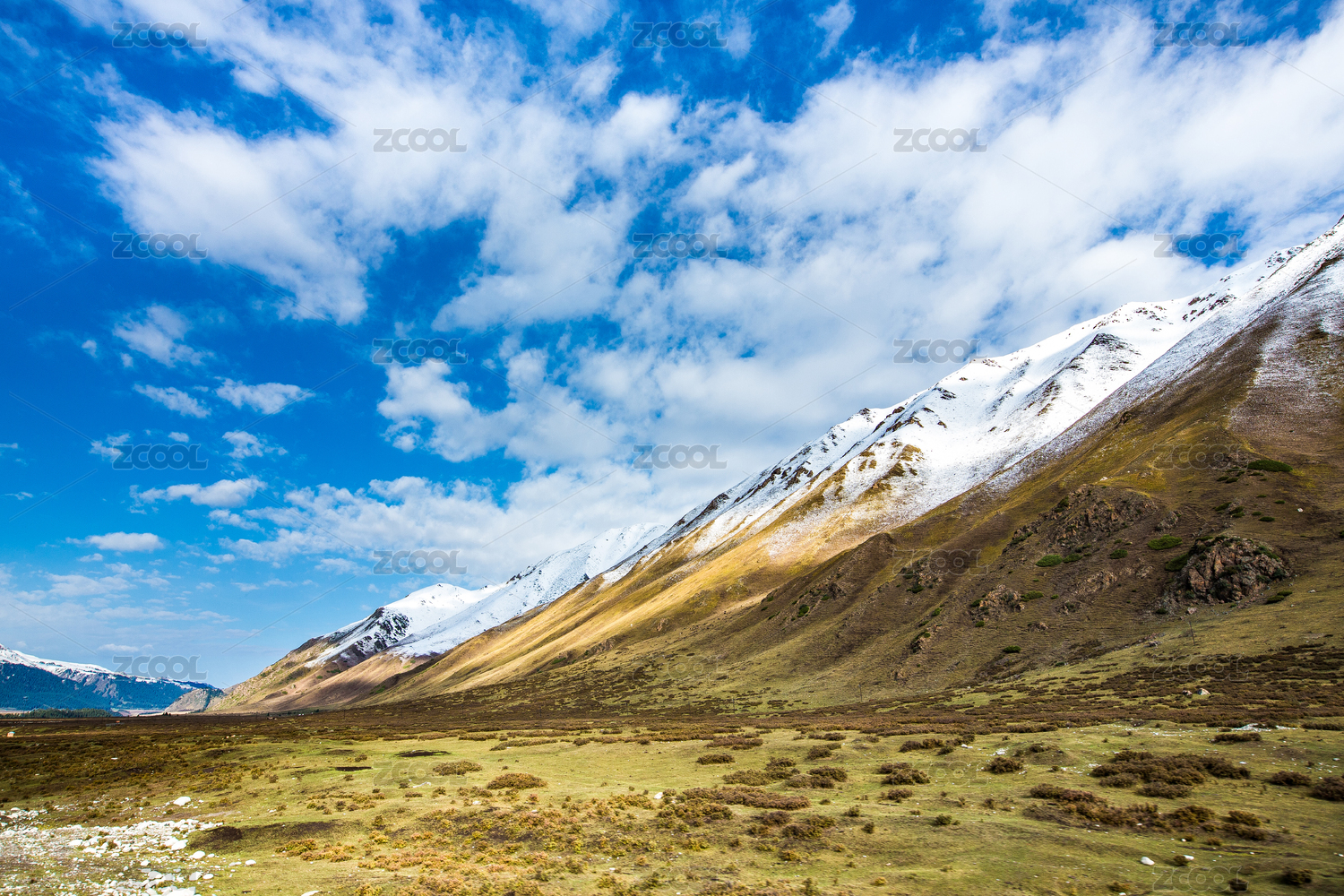 甘肃省甘南藏族自治州甘加秘境-雪山下草原