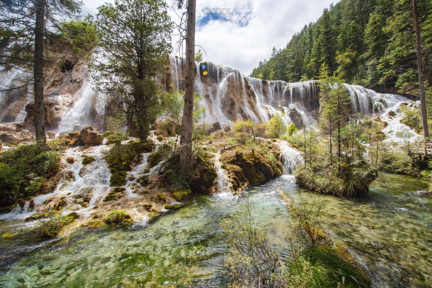 中国四川阿坝九寨沟珍珠滩瀑布的风光
