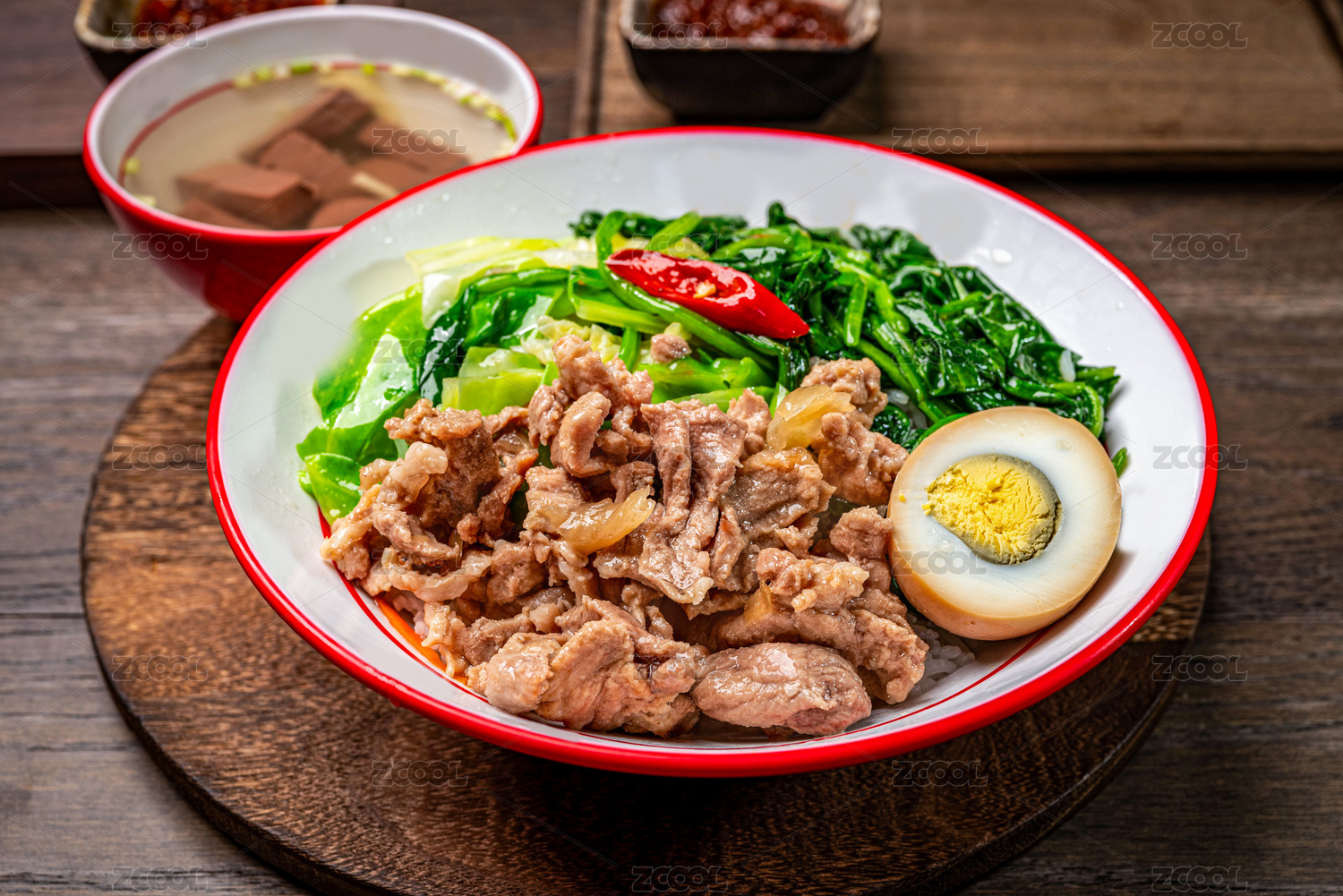 卤肉饭,活肉,猪肉,小炒肉,大肠,咸菜,米饭,盖饭,盖浇饭
