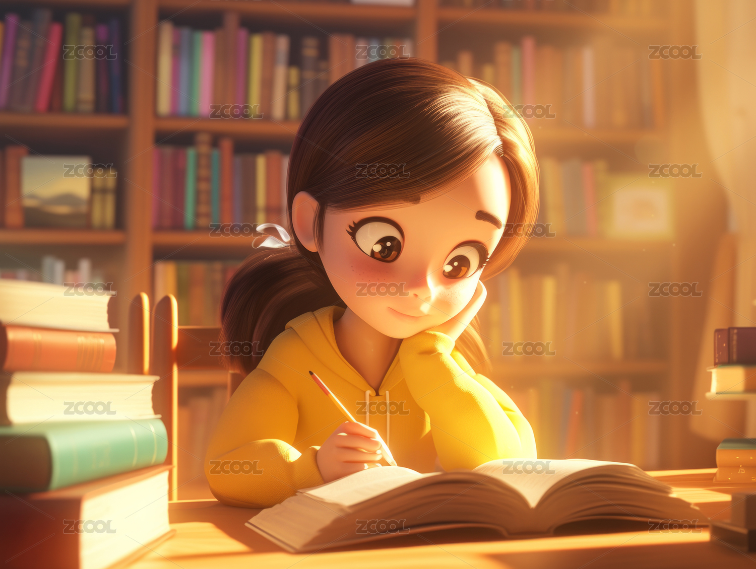 3D,卡通,人物,学生,教育,可爱,儿童,学习,知识,童年