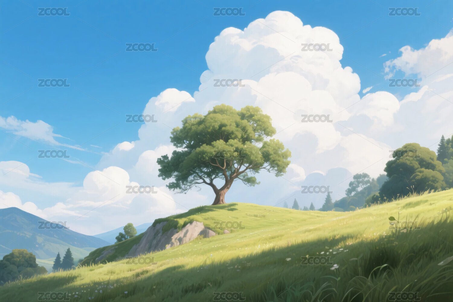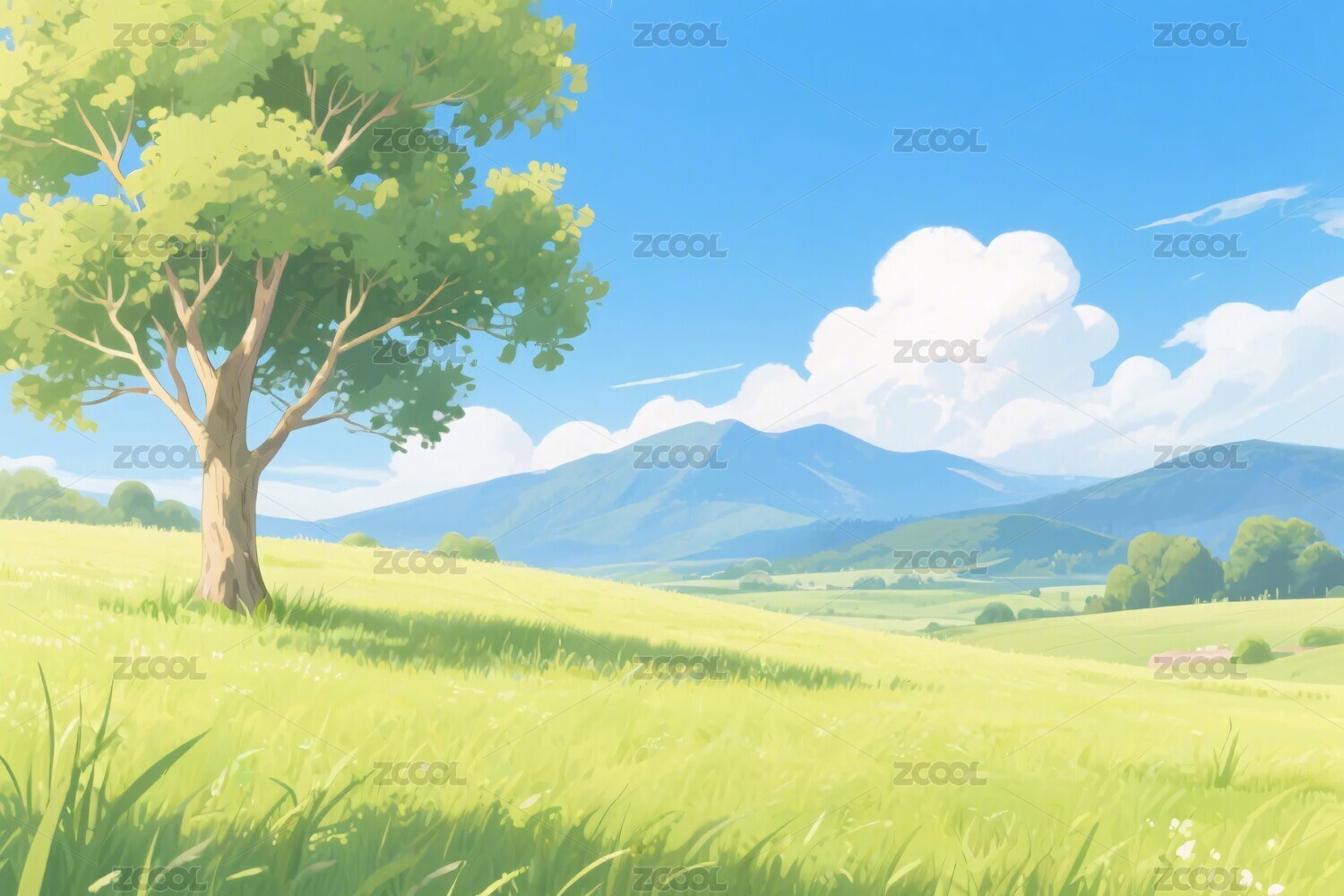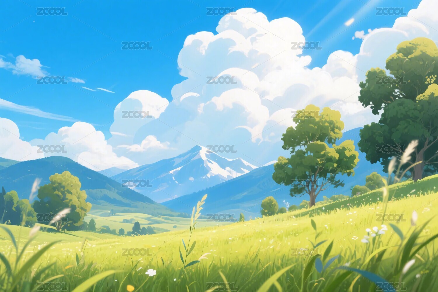 阳光草地山水风景图
