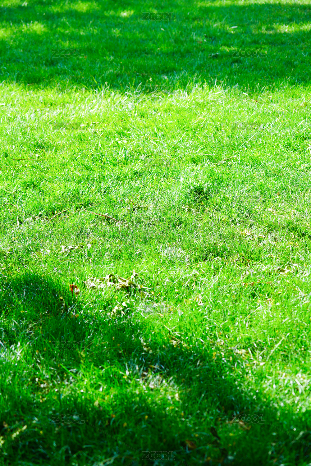 阳光照耀下翠绿色的草坪