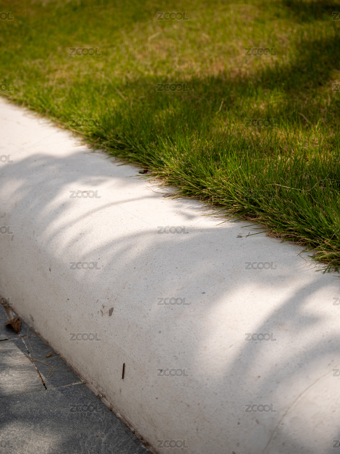 阳光下绿地栅栏的几何光影