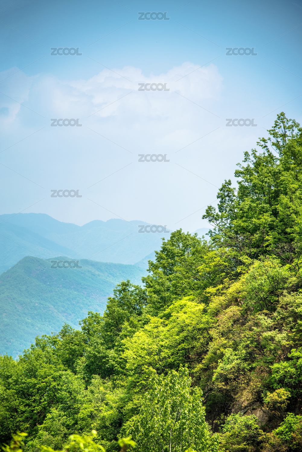 茂密的树林和隐现的山峰
