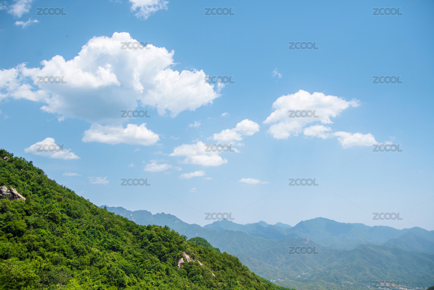 蓝天白云下的绿色山脉