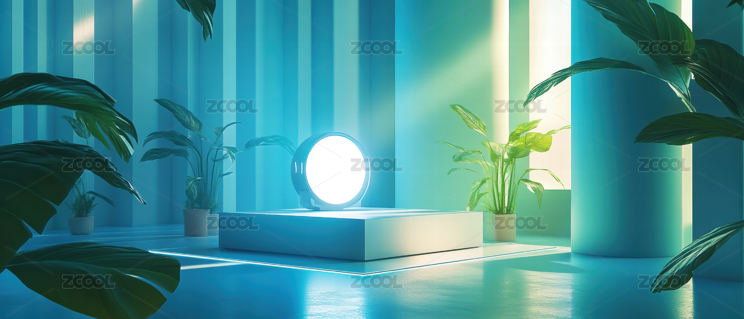 现代3D空间背景的室内景物台子