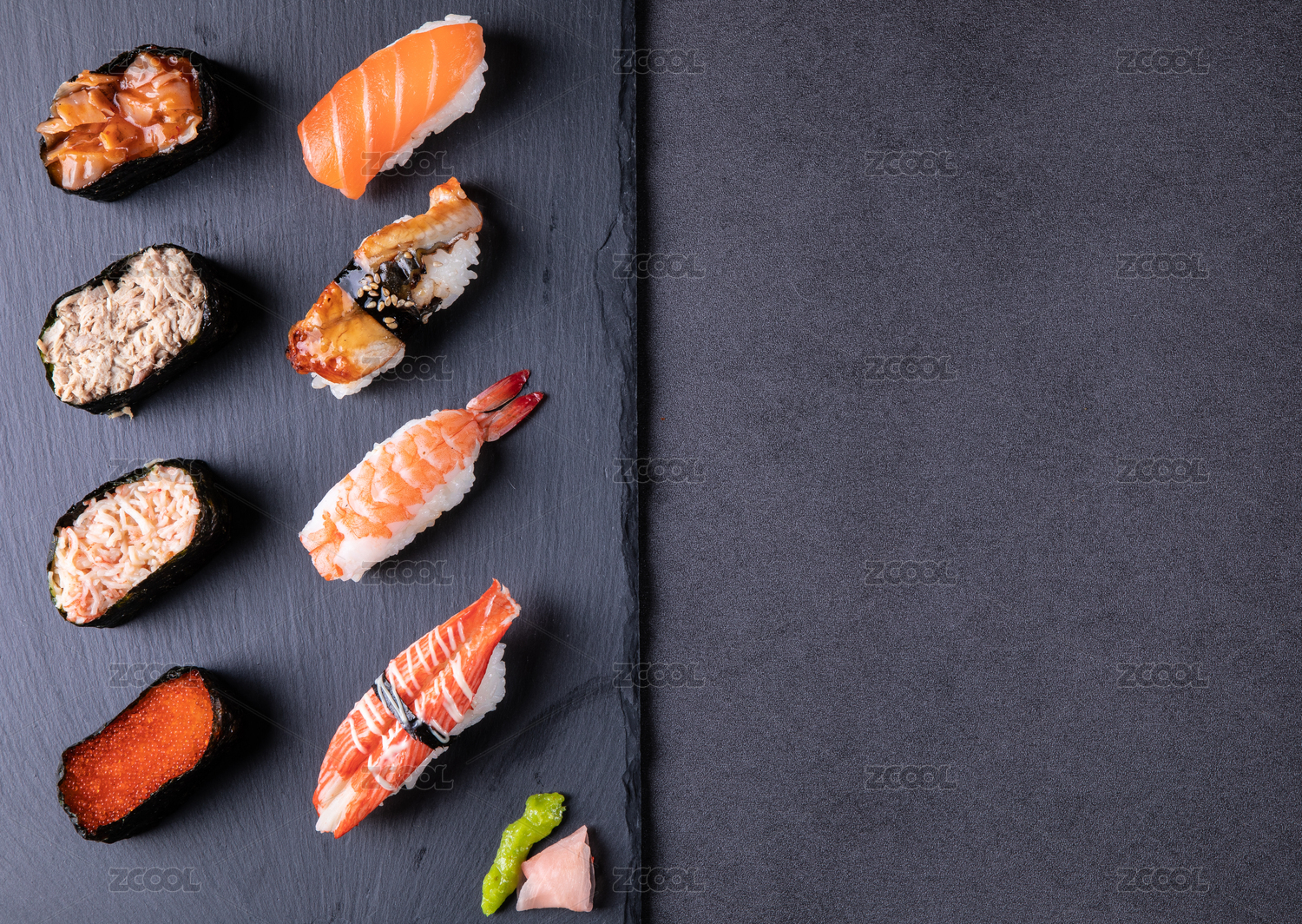 三文鱼,刺身,寿司,手卷,芥末,青芥末,石板,鳗鱼,烤鳗鱼,海苔