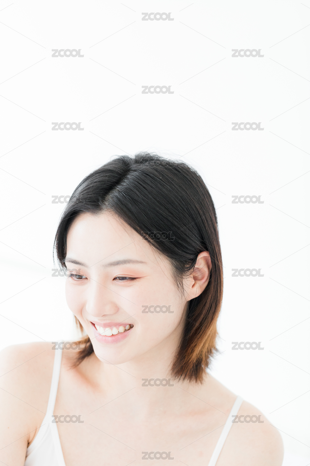 白色背景前年轻漂亮的东方女性肖像