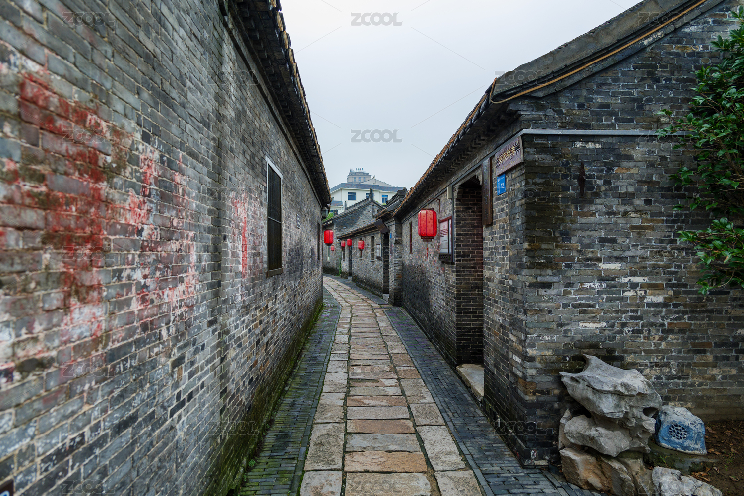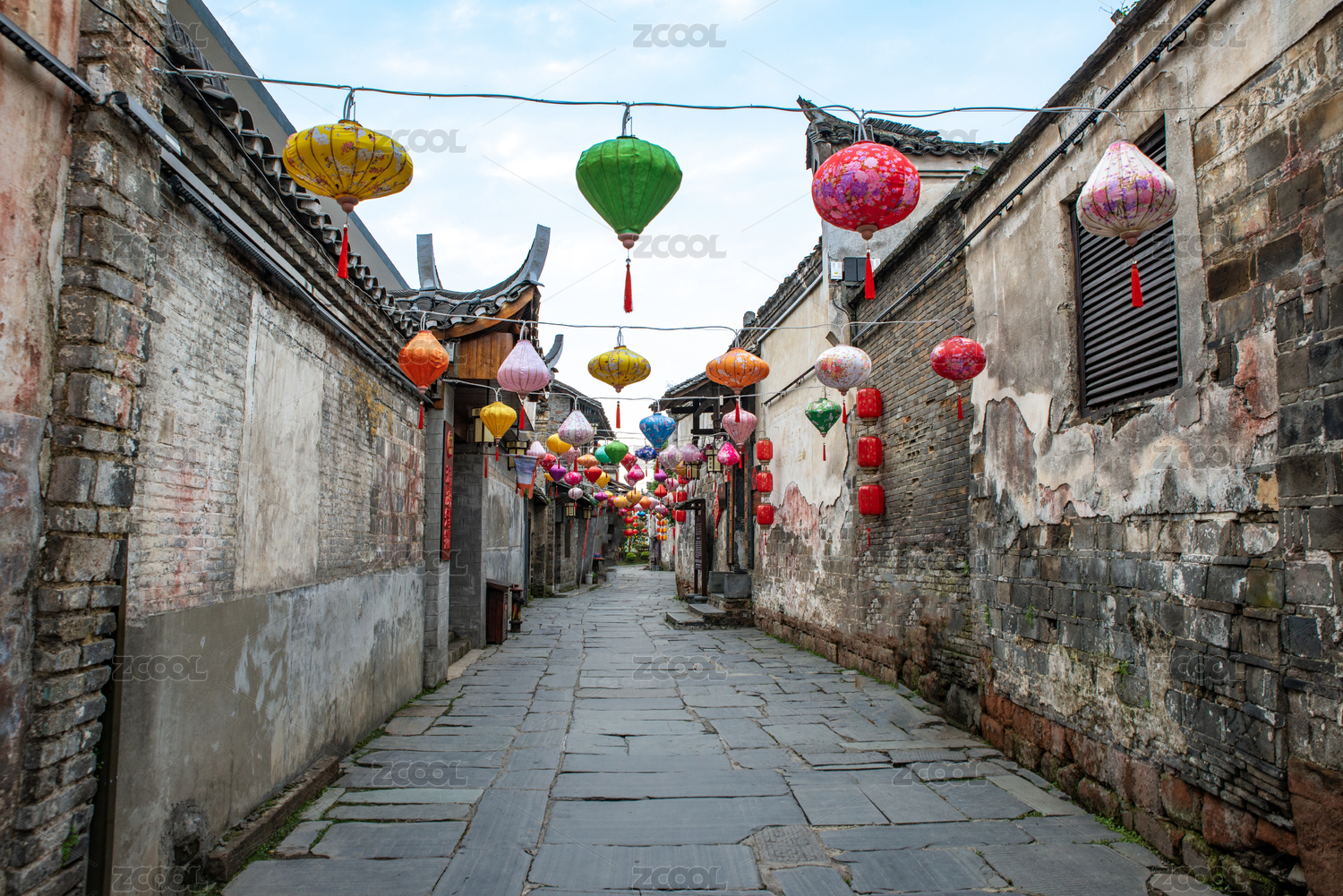 古建筑墙上挂着红色灯笼,衡阳常宁中田村