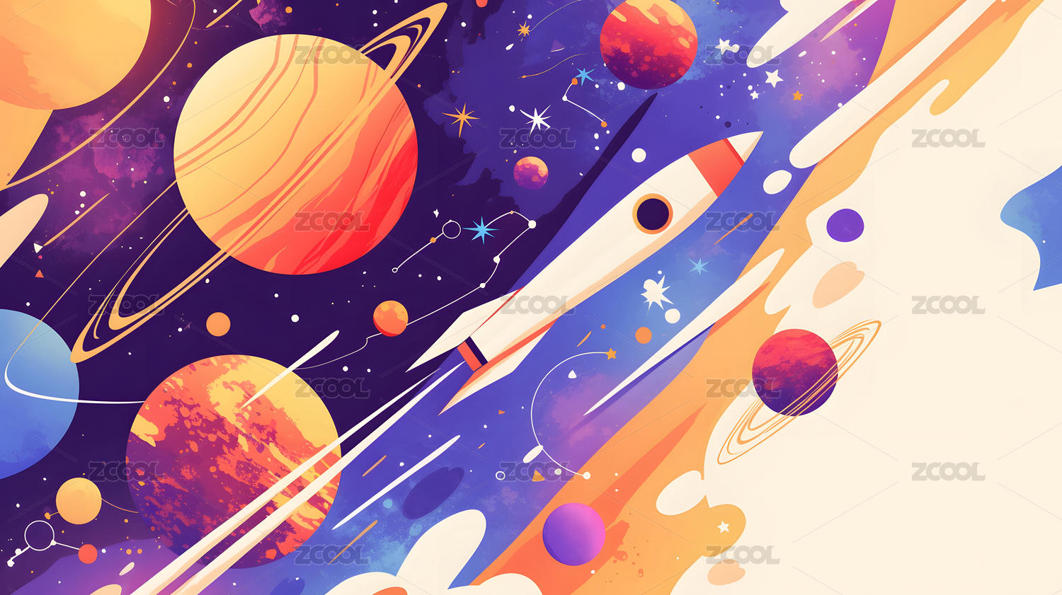 科幻科技宇宙太空星球火箭无人海报背景场景