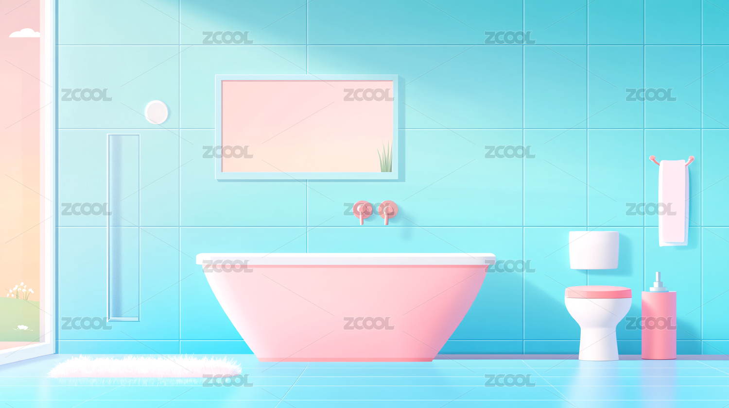 室内现代卫浴插画背景